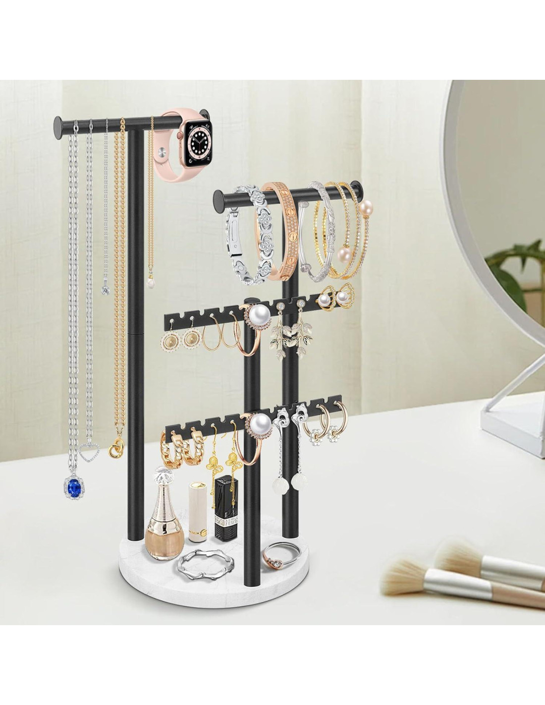 - Fácil de Montar: El soporte de joyería negro viene con un manual y los accesorios necesarios que puedes ensamblar fácilmente y hacer que tu joyería se exhiba ordenadamente, simplemente conecta los postes de metal en la base de mármol girándolos