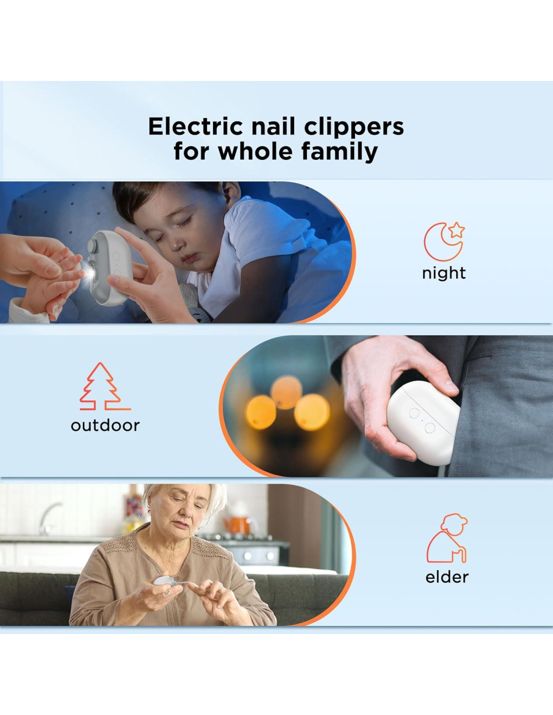- Seguro y Preciso: Equipado con sensores de seguridad integrados, el cortauñas se detiene automáticamente si detecta demasiada presión, reduciendo el riesgo de cortar demasiado cerca de la cama de la uña o causar lesiones.