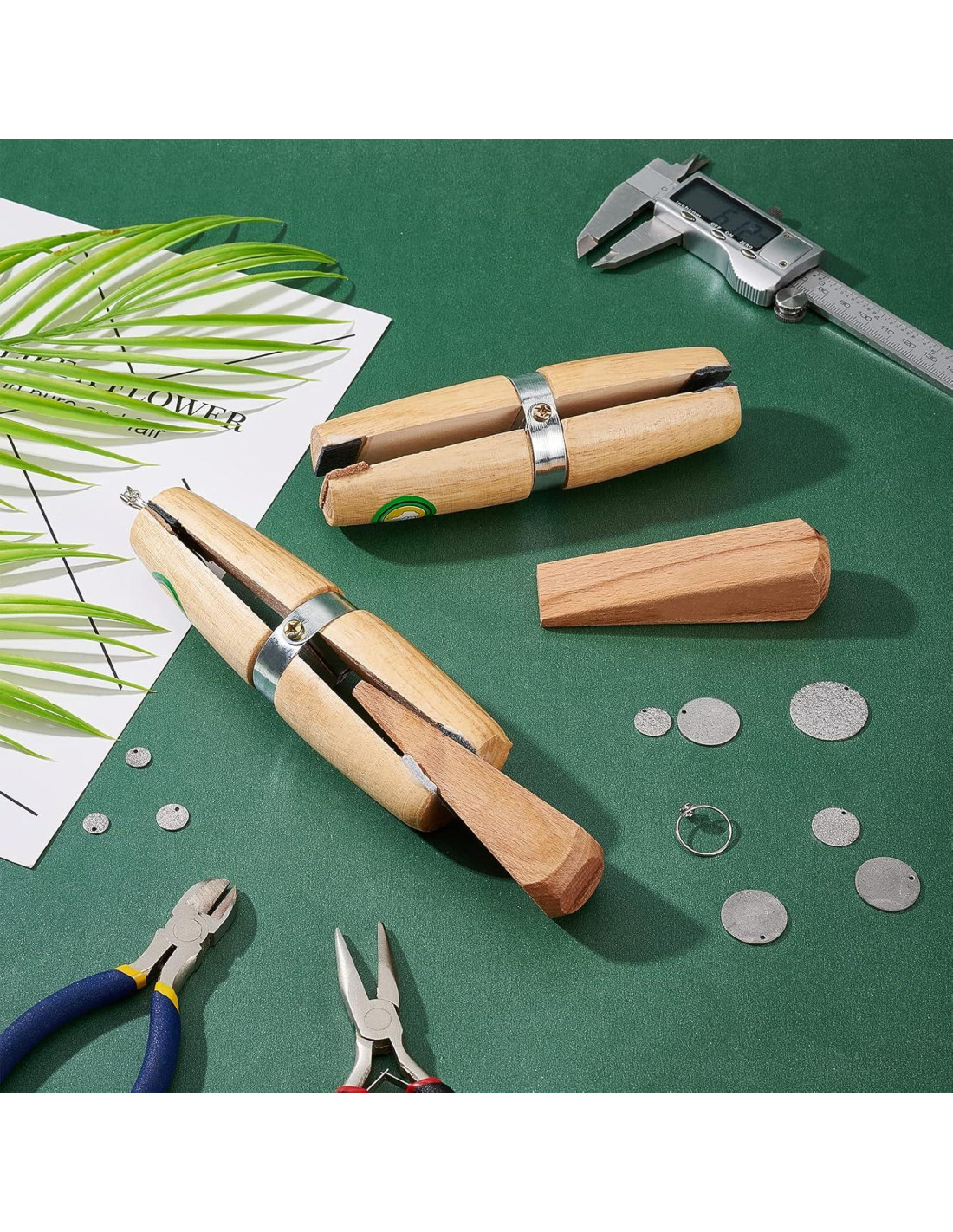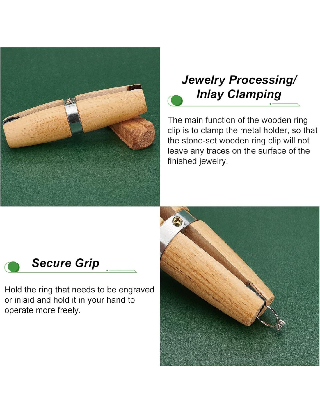 - La cuña de madera se puede introducir en cualquiera de los extremos, después de que el anillo esté colocado en las mandíbulas, para apretar la abrazadera y sostenerlo de manera segura. Es un imprescindible para cada Joyero, que puede estar fabricando Joyas o realizando trabajos de reparación en Joyas. La abrazadera también se puede usar para sostener y bloquear partes pequeñas y delicadas para varias aplicaciones