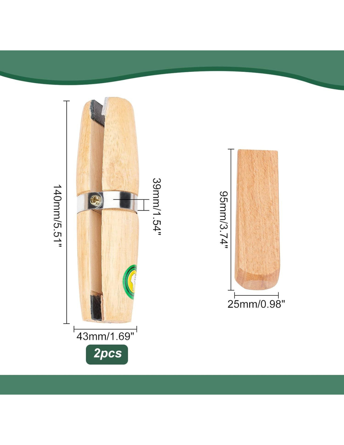 2 PC Abrazadera de Anillo de Madera con Inserciones de Cuero Tamaño: 43mm de ancho, 85mm de largo Mandíbulas Cuadradas y Redondas; Inserciones de Cuero Cuña de Madera; Cuerpo de Madera y Metal Cantidad: 2 piezas por pedido
