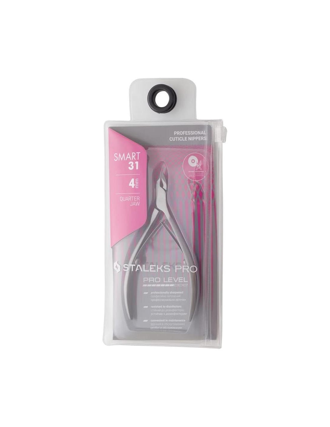 Los Cortadores de Cutículas Profesionales Staleks Pro Smart 31 con una cuchilla de corte de 4 mm ofrecen precisión y control para manicuras de calidad profesional. Diseñados para un recorte limpio y cuidadoso de las cutículas, estos cortadores son ideales para trabajos de cutículas precisos, así como para recortes de piel más extensos. Los bordes rectos, con un ángulo inclinado y una protuberancia en forma de talón, aseguran un corte preciso que minimiza el trauma en la piel. Los mangos cortos y redondeados proporcionan un agarre seguro y mayor comodidad, lo que los hace ideales para un uso prolongado en entornos de salón. Con una superficie mate satinada, la herramienta no solo se ve elegante, sino que también previene la reflexión de la luz, reduciendo la tensión en los ojos. Gracias al afilado manual, las cuchillas ofrecen cortes suaves y afilados, y el sistema de doble resorte asegura un movimiento suave y controlado en todo momento. Hechos de acero inoxidable de alta aleación premium, los cortadores Smart 31 son resistentes a la corrosión. Son completamente esterilizables en un horno de calor seco o autoclave y desinfectables con agentes especializados. Perfectos para manicuras tanto tradicionales como de hardware, estos cortadores son una opción confiable e higiénica para profesionales que priorizan la precisión, la comodidad y la durabilidad.