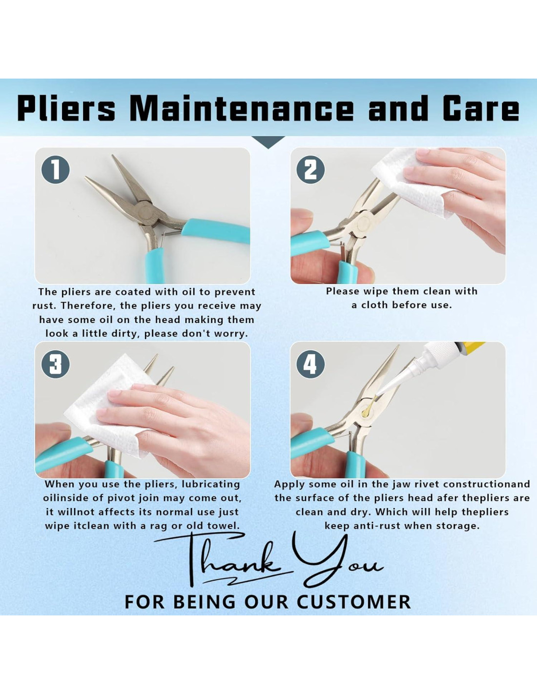 - Material Premium: Los alicates de joyería para la fabricación de joyas están hechos de acero excepcional, resistente a la corrosión para un uso prolongado. El alicate de manualidades con una superficie suave y brillante está diseñado para la fabricación y reparación de joyas, sin preocuparse por rasguños o dejar marcas en la joyería. Nota: Las juntas de los alicates de joyería están recubiertas con aceite lubricante negro para un uso más flexible, no sucio. Si le importa, puede limpiarlo con una toalla de papel.