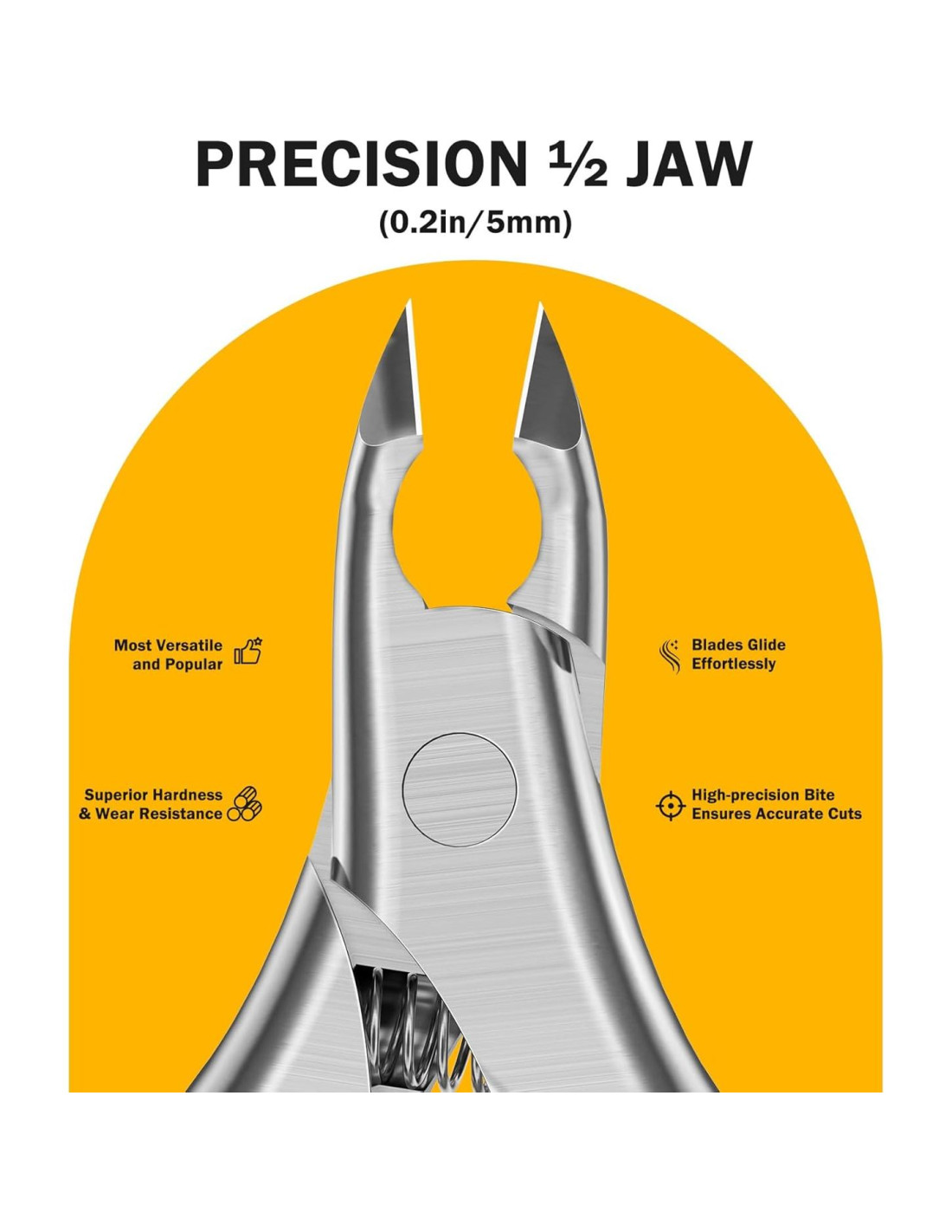 - CORTADOR DE UÑAS DE MEDIA MANDÍBULA DE PRECISIÓN - Diseñado para las tareas más intrincadas, este cortador de cutículas cuenta con una mandíbula de 1/2 (5 mm) que proporciona la máxima precisión. Elimina sin esfuerzo las cutículas excesivas, los padrastros y la piel muerta, revelando uñas limpias y bien cuidadas.