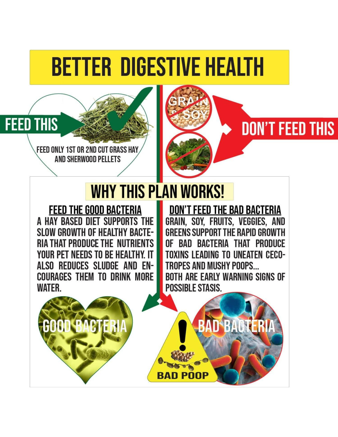 - Prebióticos de alta fibra, incluyendo: fibras cortas y largas para una salud digestiva óptima y salud inmunológica. Cambiar de marca no tiene que ser difícil para la digestión de tus conejos con la fórmula real a base de heno de Sherwood para un gran sabor y nutrición natural que es libre de granos y soja. Sin rellenos baratos o subproductos que reemplazan al heno (como cáscaras de soja o cáscaras de arroz)