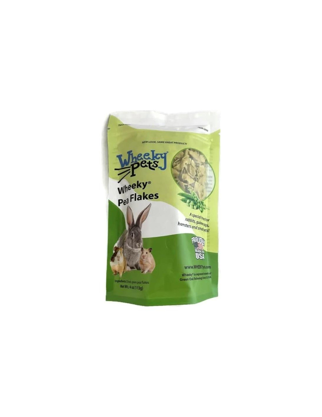 - Debido a que los Copos de Guisante Wheeky son altos en proteínas vegetales, por favor limita a 1-2 cucharaditas como máximo por día por mascota pequeña adulta; los Copos de Guisante Wheeky también se pueden usar para ayudar a conejos, cobayas, hámsters y mascotas pequeñas con bajo peso a ganar peso.