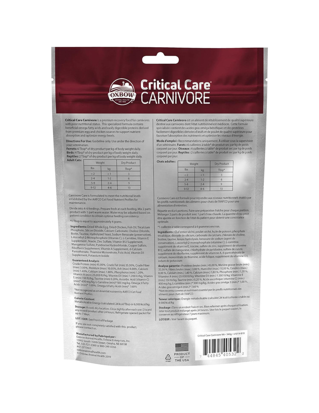 Carnivore Care es un alimento de recuperación premium para carnívoros con un estado nutricional deficiente como resultado de enfermedad o cirugía. Este producto especialmente formulado contiene ácidos grasos omega beneficiosos y proteínas fácilmente digestibles derivadas de fuentes de huevo y aves de corral de alta calidad para apoyar la absorción de nutrientes y optimizar los niveles de energía. Carnivore Care es denso en calorías por diseño, requiriendo menos volumen de ingesta para cumplir con los requerimientos energéticos diarios.