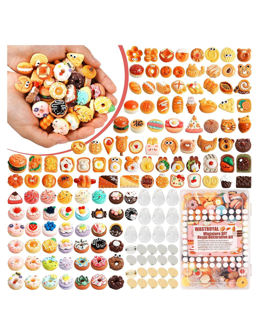 - Juego de Comida Miniatura: Paquete de Valor de 157 Piezas. Incluye varios estilos de diferentes juguetes de comida linda, como comida mini, hamburguesas, pasteles, pan, chocolate, helado, cosas mini, bollos, etc. Cantidad y estilos suficientes que pueden ofrecer infinitas posibilidades creativas y alivio del estrés