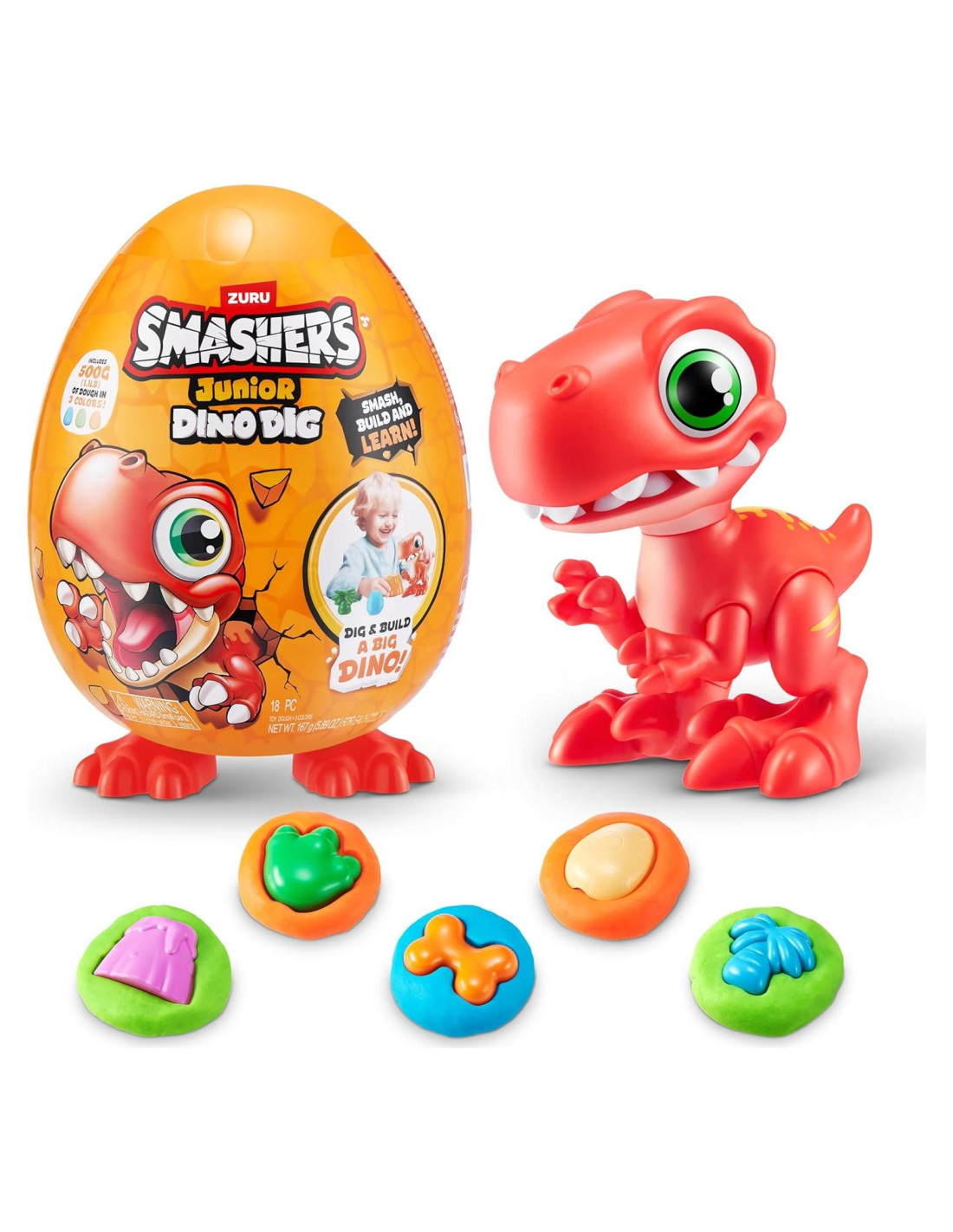 - 500g / 1 lbs de Masa de Dino: Smashers Junior Dino Dig está lleno de 500g / 1 lbs de masa y 3 moldes para crear formas.