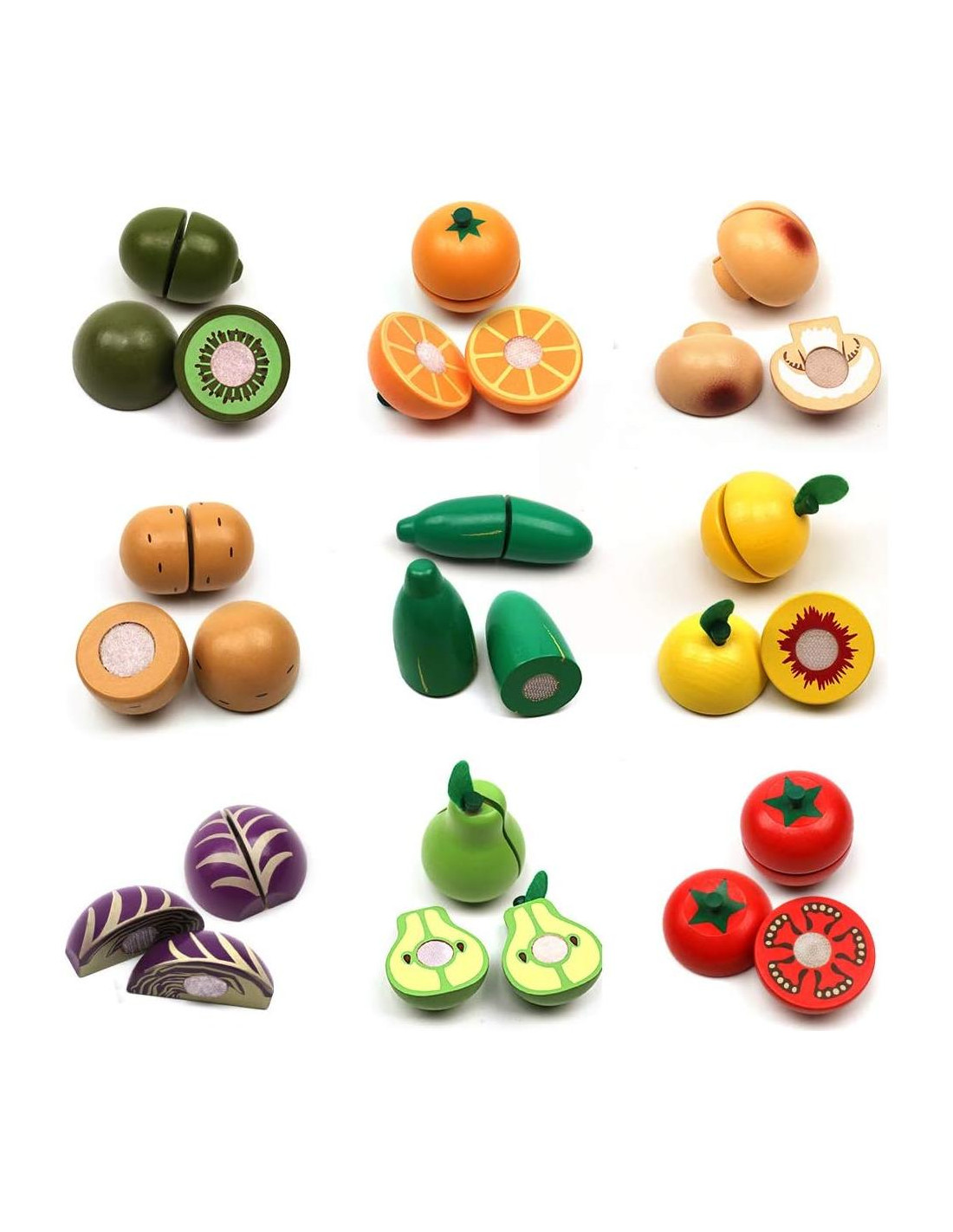Los padres y los niños juegan juntos, enseñan a los bebés a reconocer diferentes frutas y verduras, dejando que los padres sean testigos del crecimiento del bebé. Nuestro juego de comida cuenta con pestañas autoadhesivas que mantienen las piezas unidas y se 'cortan' con un sonido crujiente satisfactorio. Ayuda a enseñar a los niños los conceptos de parte y todo para habilidades de desarrollo matemático temprano. Tomate x 1, kiwi x 1, pera x 1, limón x 1, repollo rojo x 1, naranja x 1, papa x 1, champiñón x 1, calabacín x 1, cortador de madera x 1, bandejas de madera x 1. Hecho de madera natural sin olor, colores vibrantes con pintura a base de agua no tóxica, todas las piezas de madera con bordes suaves y esquinas redondeadas que son seguras para los niños. Las formas claras aumentan el apetito infantil, ayudan a los bebés a identificar colores y frutas y verduras, entender la estructura interna, aumentar el interés y la cognición. Introduce a los niños a alimentos saludables de manera divertida e imaginativa con este juego de comida de imitación. Viene con una bandeja con asas para un fácil transporte y para mantener todo organizado.