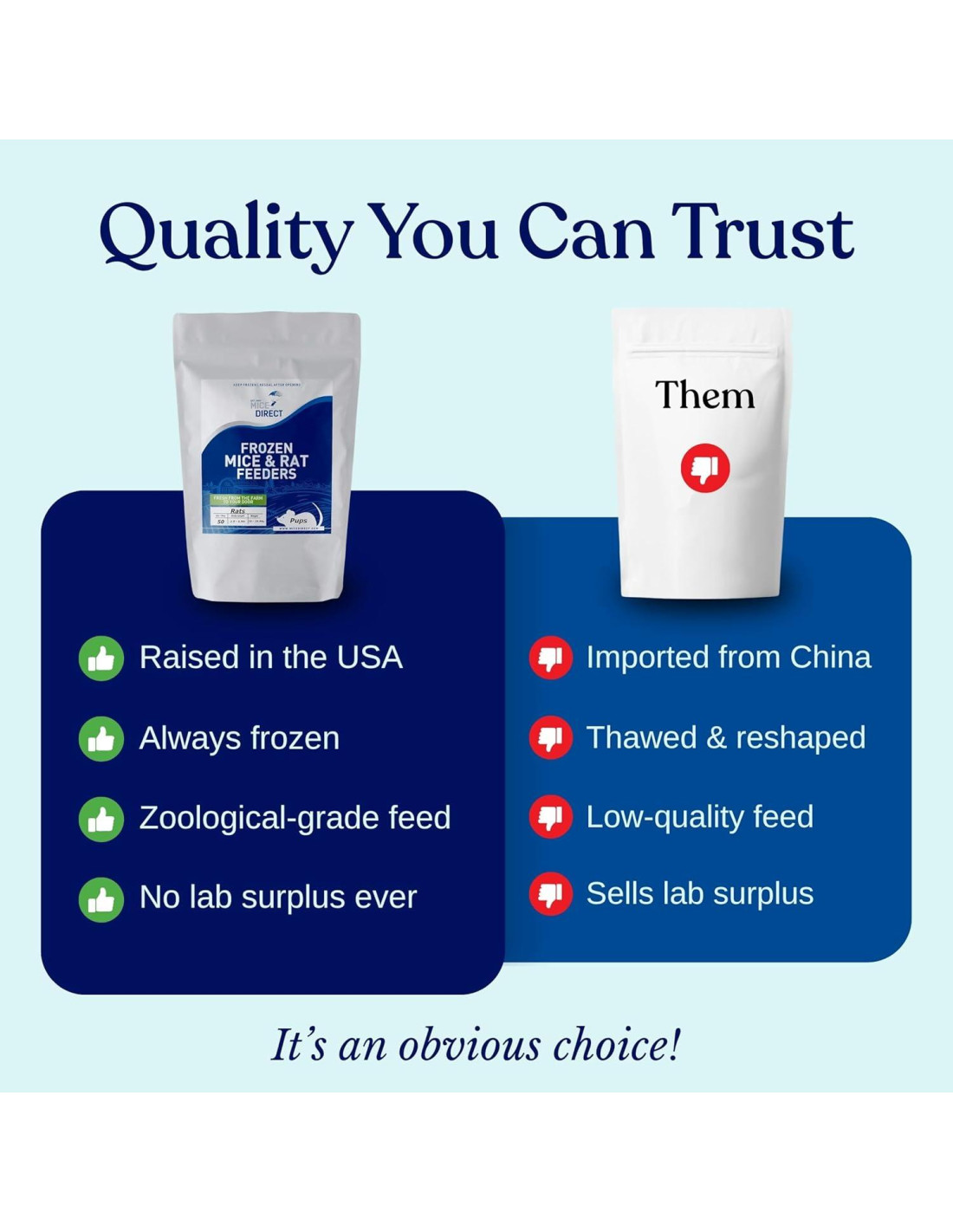 - Confiable; no arriesgues alimentadores importados inferiores de China o excedentes de laboratorio para serpientes y reptiles; estos 75 ratones congelados pinkies nacen en Cleveland Ga; no se añaden ingredientes o saborizantes artificiales