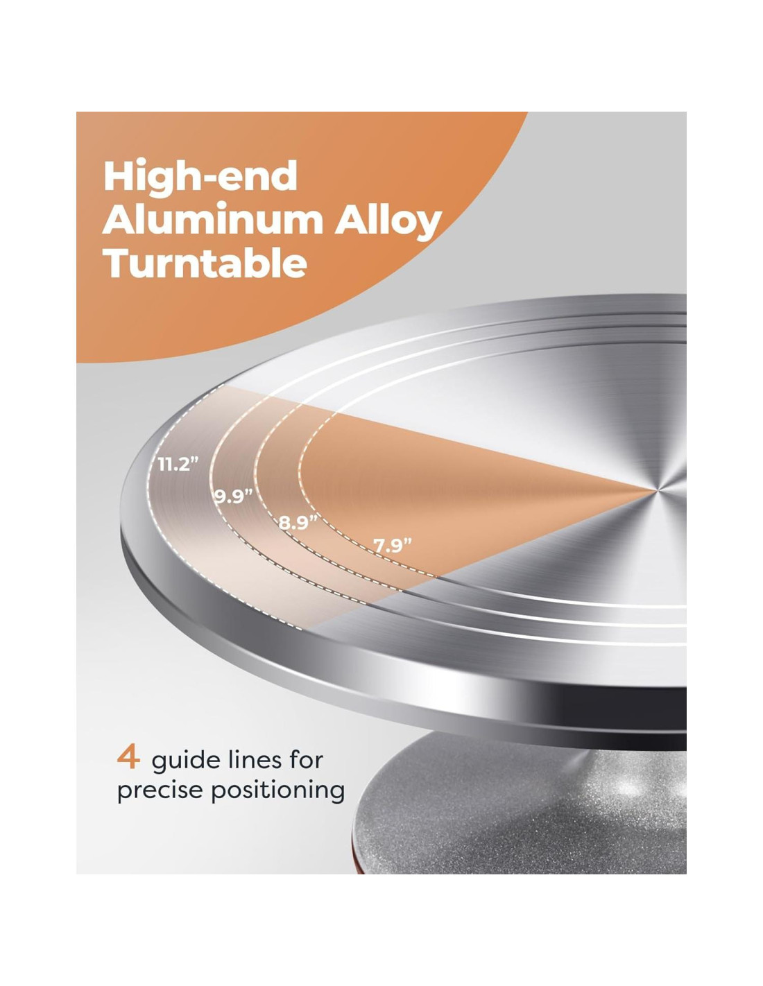 - Plato Giratorio para Fiesta: Construido con aleación de aluminio de alta resistencia que proporciona excelente estabilidad en las encimeras, mantiene el soporte del pastel en su lugar. Superficie antideslizante y pies de goma para ayudar a mantener su pastel y soporte de decoración en su lugar mientras decora.