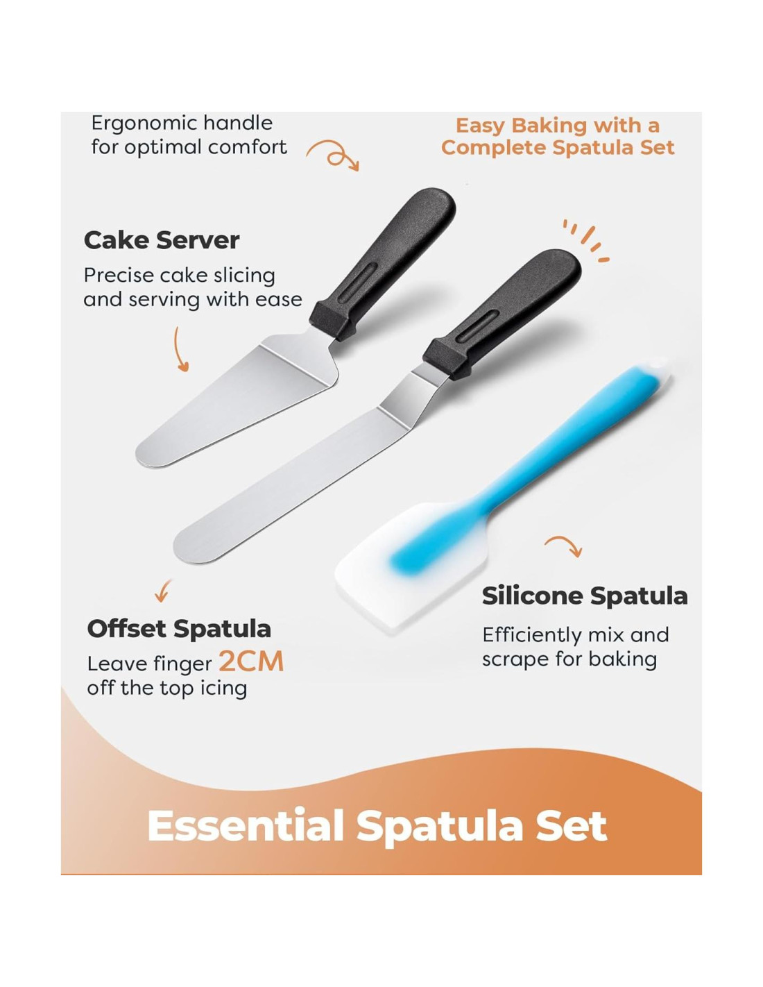 - Espátula Angulada y Espátula de Silicona: Espátula offset de glaseado de 12.7" (32,26 cm) aplica el glaseado en el lado o la parte superior de los pasteles. Perfecta para alisar la superficie del glaseado, hacer pasteles en capas y cortar el pastel. Una suave espátula de silicona para glaseado puede ayudarle a obtener una mezcla perfecta al mezclar el glaseado, la harina o los huevos.