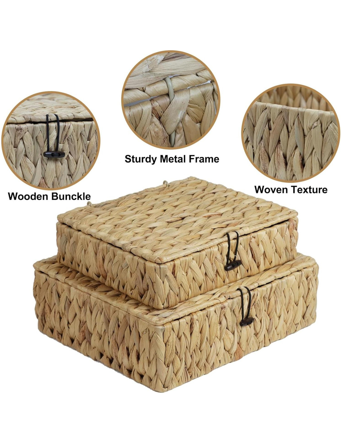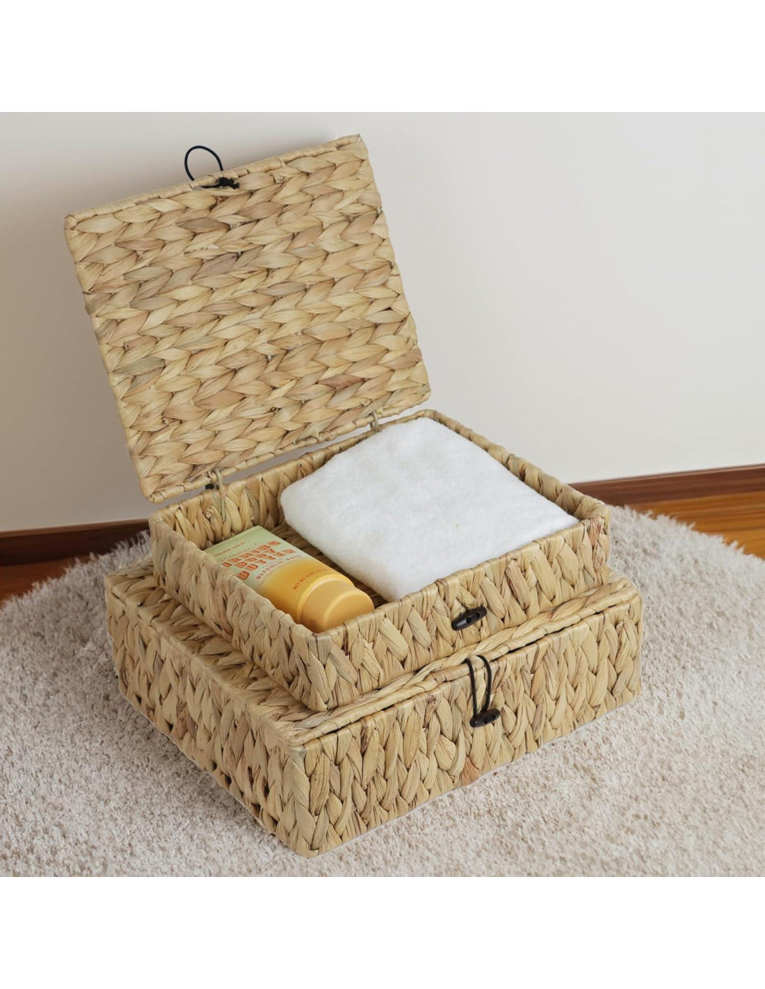 - Cestas de Almacenamiento Versátiles: Organiza sin esfuerzo revistas, libros, correo, papelería, controles remotos, suministros de manualidades, juguetes o elementos esenciales de baño. La tapa segura mantiene el contenido libre de polvo y oculto de manera ordenada.