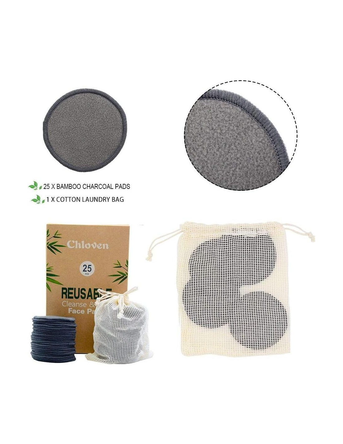 - [QUÉ INCLUYE] Este conjunto incluye 25 almohadillas desmaquillantes de bambú de carbón y algodón, una bolsa de lavandería de algodón. Las almohadillas están hechas de algodón orgánico de bambú ultra suave que se siente lujoso en la piel, se ajustan perfectamente a la palma de tu mano y son fáciles de usar. El bambú de carbón tiene grandes propiedades de absorción de humedad y es más suave para la piel sensible. Estos productos ecológicos, cero residuos, paños sostenibles, almohadillas desmaquillantes orgánicas son todo lo que necesitas