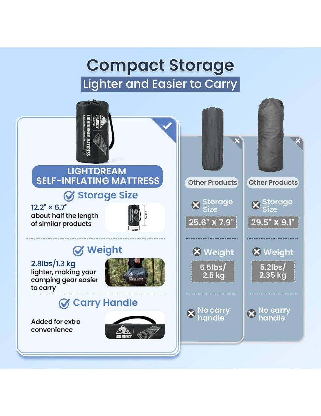 - COLCHÓN DE 3 TEMPORADAS: Resistencia térmica de 4.5 R, utilizando tecnología avanzada de corte de tela y calidad artesanal para reducir volumen (50% menos que el promedio del mercado) y peso (30% menos que el promedio del mercado) para fácil almacenamiento y transporte