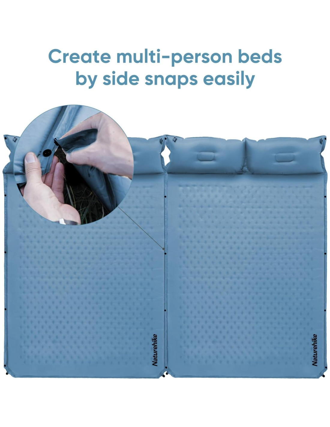 Naturehike D02 Completa Almohadilla Autoinflable. ¡Por favor nota! 1. Cuando la almohadilla autoinflable esté en estado inflado, aprieta la boquilla de aire, enjuágala suavemente con un cepillo suave y un detergente neutro, y guárdala después de secar al aire. 2. Intenta no poner el producto en un lugar húmedo o expuesto al sol por mucho tiempo. 3. No se recomienda colgarla al aire libre en viento y lluvia por mucho tiempo. 4. No se recomienda lavar la superficie de la cama con frecuencia. Especificaciones: - Dimensiones del artículo: 196 x 132 x 2.54 cm - Peso del artículo: 2.27 kg - Dimensiones de almacenamiento: 22.86 x 22.86 x 63.5 cm - Materiales: 190T Tafetán, PVC, Espuma de Memoria de Alta Resiliencia - Tiempo de Autoinflado: 3-5 mins (ps: la almohadilla puede autoinflarse al 70% y luego rellenar el aire con respiraciones para hacerla más completa. Ideal para camping familiar, camping en auto, viajes por carretera o invitados en casa.