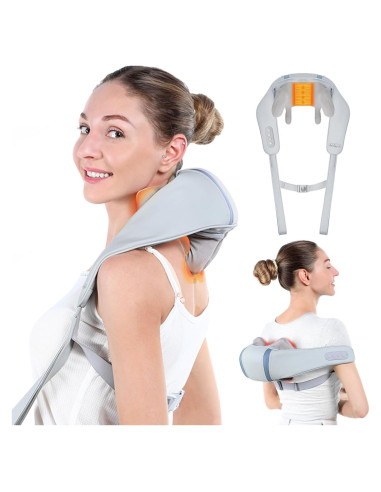 - Masajeador de Cuello Calentado Potente - El masajeador de hombros y cuello con calor cuenta con 2 configuraciones de calor (43C/50C) que proporcionan una forma segura y eficiente de mejorar la circulación sanguínea y aliviar los calambres y tensiones corporales. El masajeador de cuello también presenta una función de apagado automático de 10 minutos para prevenir el uso excesivo.