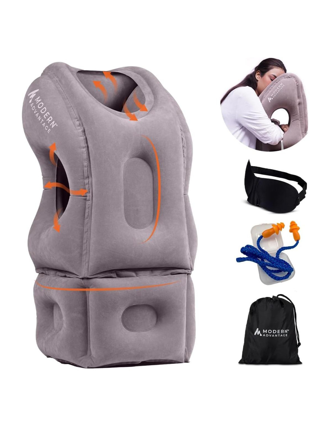 - Accesorios de Confort: Viene con una máscara para los ojos y tapones para los oídos para mayor comodidad y relajación durante el viaje o el descanso.