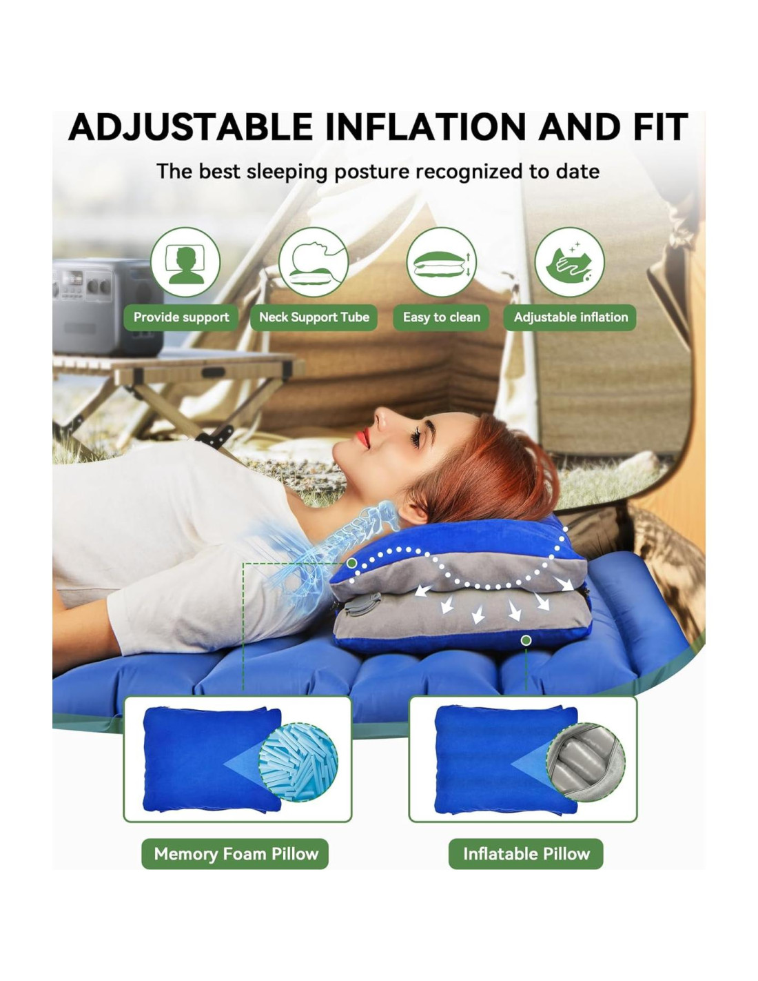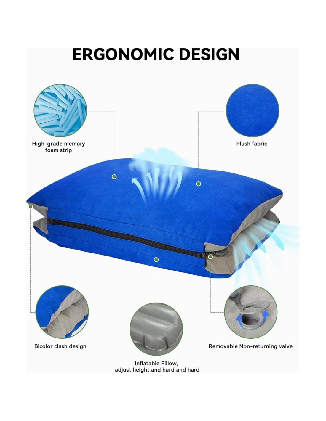 - Nuestra almohada inflable JefDiee es tu almohada de viaje imprescindible para cualquier viaje. En aviones, trenes o autobuses, esta almohada lumbar ofrece un soporte confiable para aliviar el dolor en la parte baja de la espalda. El diseño 2 en 1, que combina una vejiga de PVC resistente y un núcleo de Espuma de Memoria, previene la fuga de aire. Tiene una vejiga de PVC gruesa separada que ha pasado casi 1,000 pruebas de calidad. Con nuestra innovadora VÁLVULA, inflala en segundos con solo unas pocas respiraciones y desinfla sin esfuerzo. La altura ajustable y la construcción ergonómica te permiten personalizar la comodidad, convirtiéndola en una almohada de camping imprescindible para aventuras al aire libre.