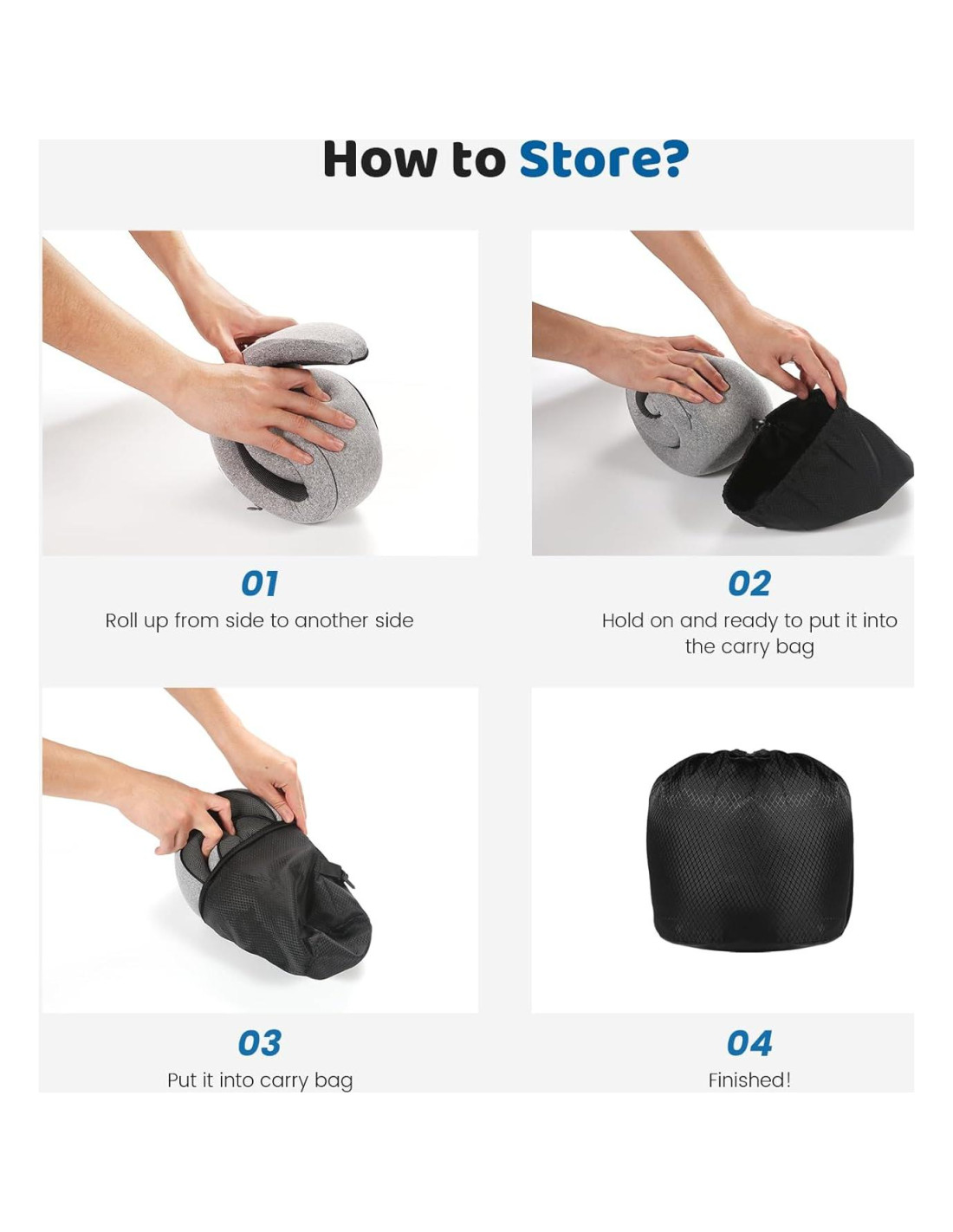 - Portabilidad: Nuestra almohada de viaje viene con una conveniente bolsa de viaje. Simplemente enróllala, métela en la bolsa y adjúntala fácilmente a tu maleta o mochila. No ocupará espacio extra durante tus viajes, ¡súper útil y sin complicaciones!