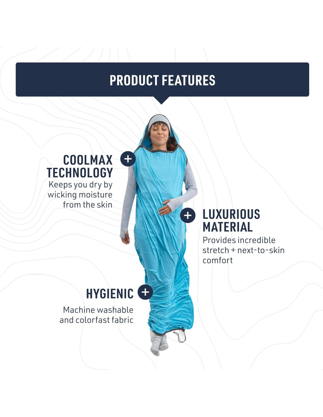 - 1 x Forro de saco de dormir Breeze de Sea to Summit, Momia estándar con cordón de ajuste
