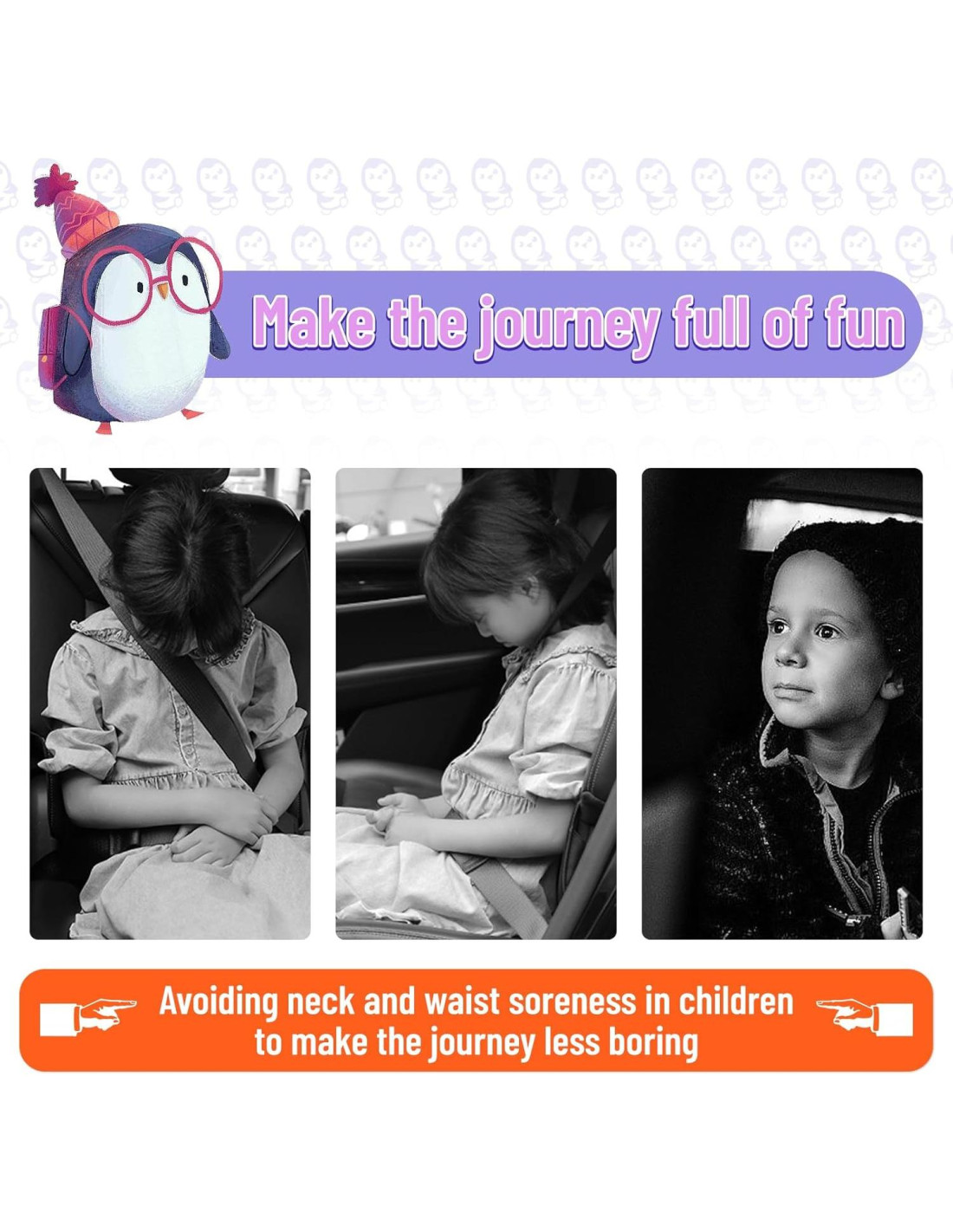 - [Compañero de Viaje Indispensable] Nuestra almohada para el cinturón de seguridad para niños es versátil: ideal para coches, aviones, trenes y autobuses escolares. También es una excelente opción para siestas en la oficina durante los descansos para el almuerzo. Ya sea que esté en un viaje por carretera o en un vuelo largo, esta almohada de viaje púrpura es su opción para la comodidad.