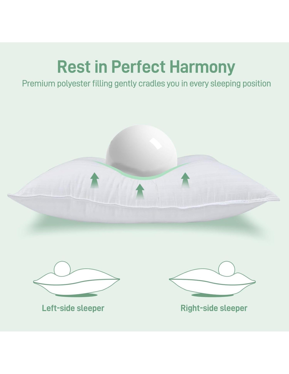 - Soporte Duradero, Sin Aplanamiento Nuestra relleno de poliéster premium imita la suavidad del plumón mientras resiste el aplanamiento, proporcionando un soporte confiable para el cuello y manteniendo su volumen para una comodidad constante noche tras noche.