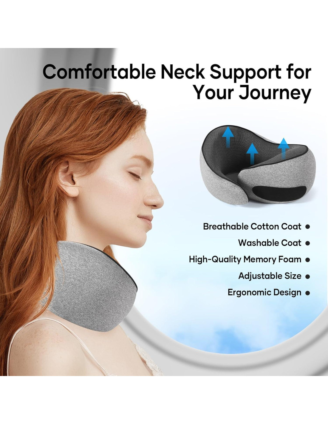 - Relleno de Espuma de Memoria La Almohada de Cuello de Viaje está rellena con la última tecnología de relleno de espuma de memoria con alta resiliencia y tecnología de rebote de 5 segundos. Es cómoda y duradera, también se puede ajustar fácilmente con velcro para adaptarse a diferentes tamaños de cuello.