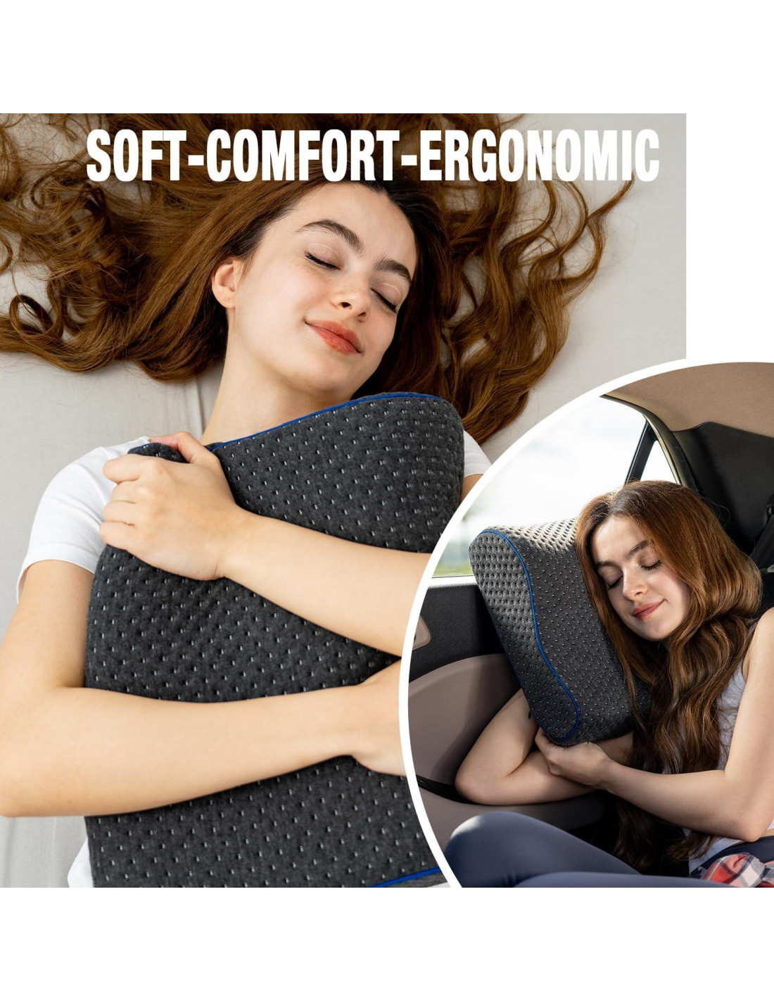 - COMODIDAD COMO EN CASA - Nuestra almohada de espuma viscoelástica de lujo, especialmente desarrollada, se adapta perfectamente a los contornos de tu cabeza y cuello, brindándote toda la suave comodidad y soporte de tu almohada de casa mientras viajas, incluso al hospedarte en hoteles. La forma cuadrada y plana es versátil, lo que asegura maximizar la comodidad y el descanso sin importar la posición. ¡No más almohadas inflables incómodas y no más dolor de cuello o hombros al despertar!