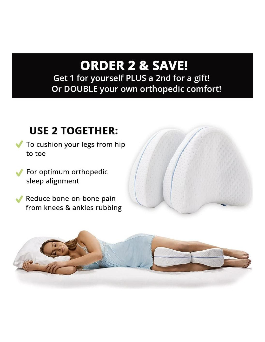 - LA ÚNICA ALMOHADA PARA LAS PIERNAS QUE SOPORTA TANTO TUS PIERNAS COMO RODILLAS - Cuando inventamos nuestra almohada para las piernas a principios de los años 90 (la forma de reloj de arena que tantas empresas han copiado), nuestro objetivo era mejorar la alineación al dormir para reducir el dolor. La almohada para las piernas fue inventada para ayudar a reducir la presión que ocurre por una mala postura al dormir, lo que causa incomodidad. Años después, nos dimos cuenta de que acolchar y soportar TANTO tus piernas como rodillas es importante para mantener una alineación adecuada y ayudar a reducir el dolor.