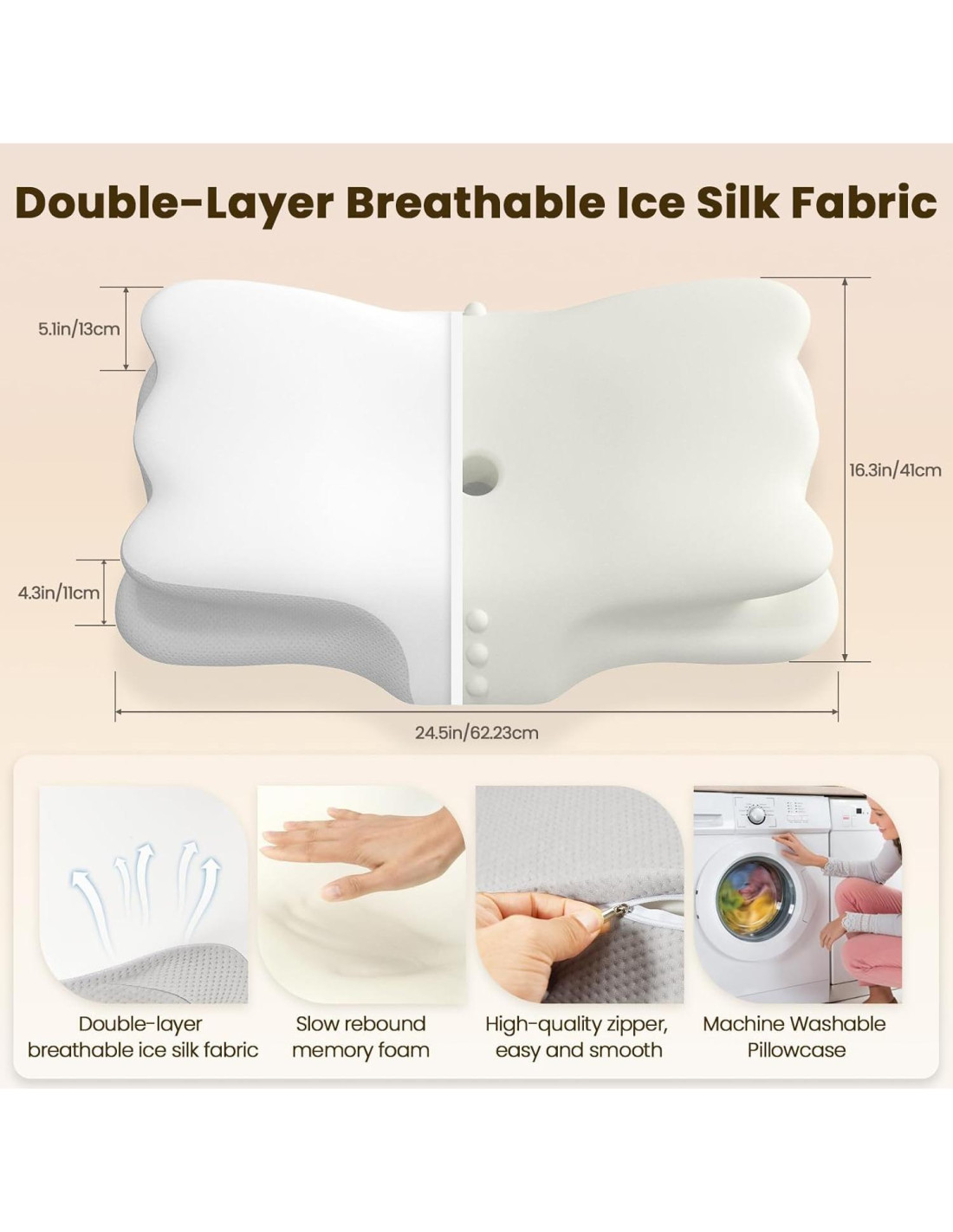 - Funda Desmontable: La funda de la almohada para el dolor de cuello presenta un diseño de seda helada de doble capa, que es más suave y transpirable. Ya seas un durmiente caluroso o en verano, su función de refrigeración superior mantiene tu piel seca. La funda de doble capa es conveniente de quitar, lavable a máquina e hipoalergénica, asegurando un ambiente de sueño limpio.