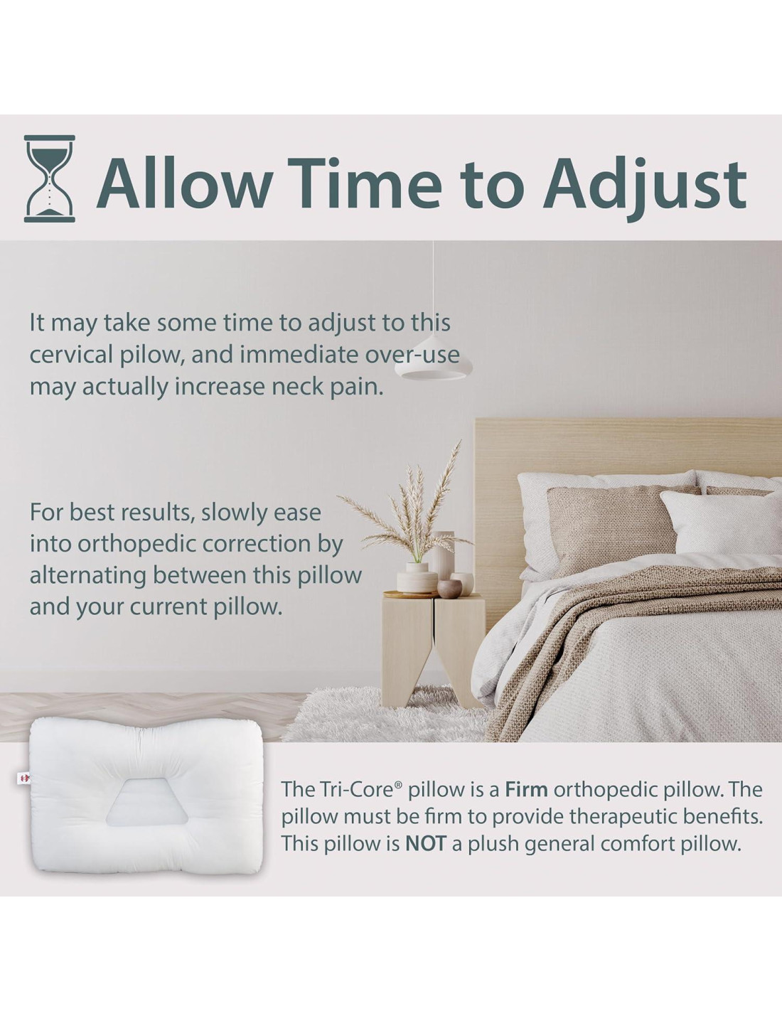 - TAMAÑO/MATERIAL/ORÍGENES/USO: Suave Mediana, Blanca 23 pulgadas x 15 pulgadas (58,42 cm x 38,10 cm); Ensamblada en EE. UU. con materiales de origen global; Sin látex; Se adapta a una funda de almohada de tamaño estándar; Puede que necesites tiempo para ajustarte a la almohada durante varias semanas, el uso excesivo inmediato puede aumentar el dolor de cuello; Alterna entre Tri-Core y la almohada actual mientras tu cuerpo se ajusta