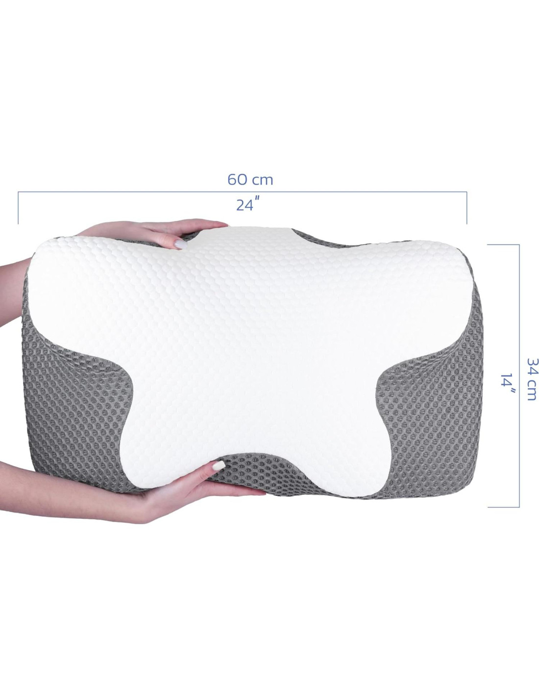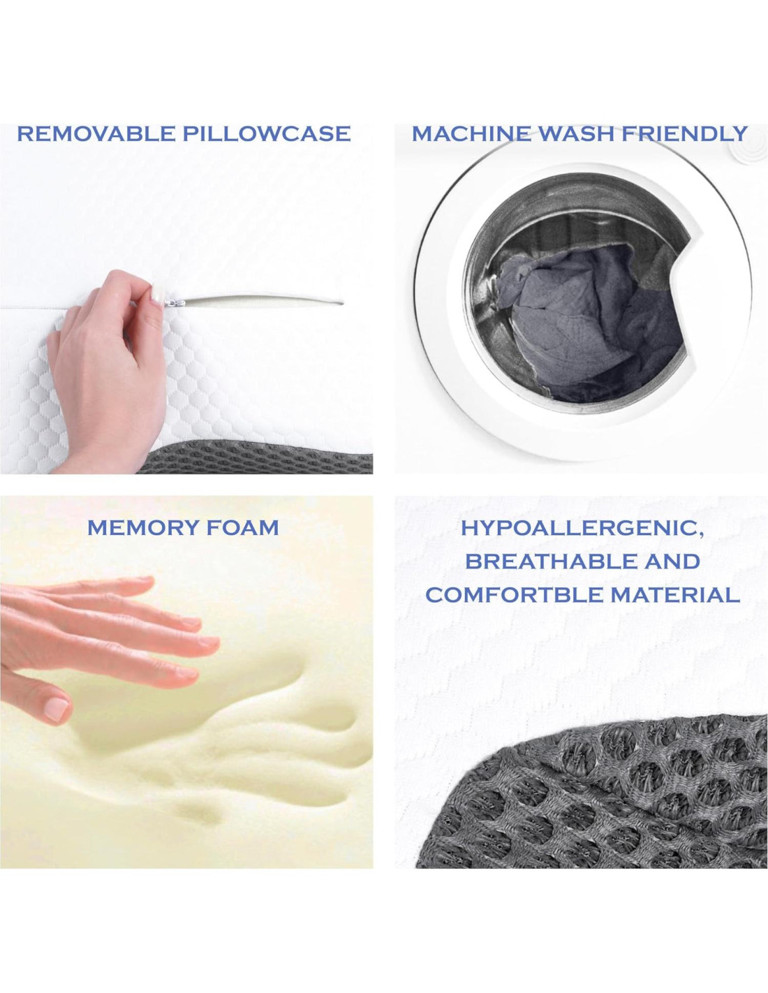 - La almohada ortopédica cuenta con curvas, huecos y ángulos especiales para facilitar cambios de posición cómodos. Los reposabrazos únicos ofrecen alivio para la falta de sensibilidad en los hombros y brazos. Fabricada con espuma viscoelástica de alta calidad, la almohada logra el equilibrio ideal entre firmeza y comodidad. Alivia eficazmente la presión en la cabeza, cuello, hombros y músculos de la espalda.