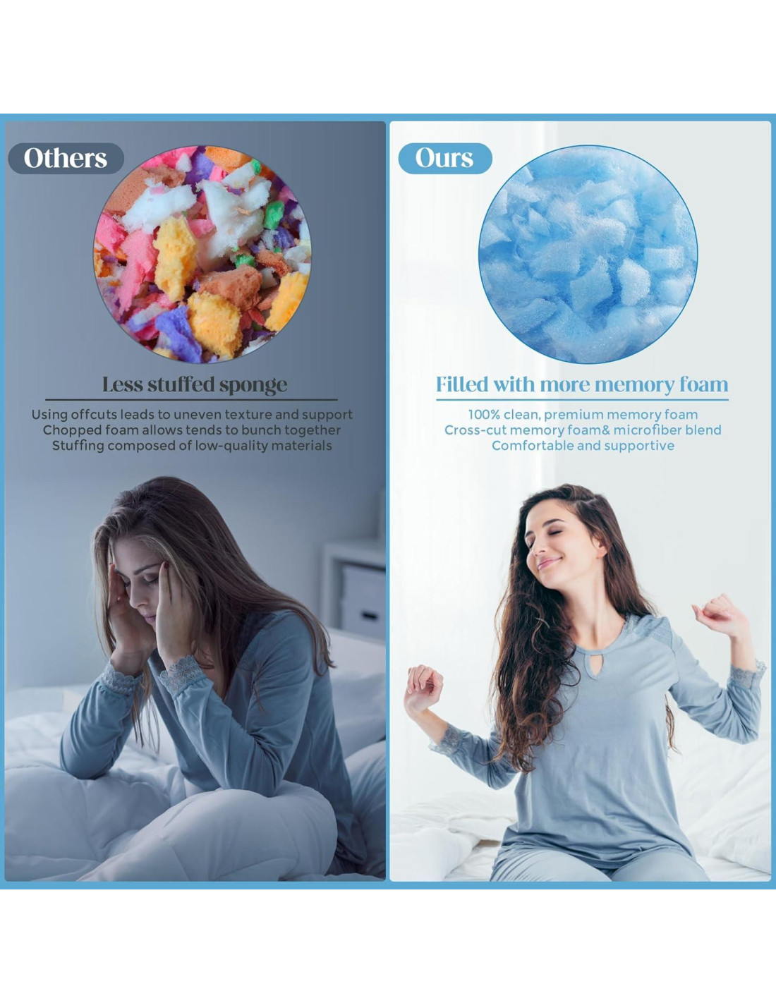 - Almohadas de altura ajustable - Nuestro paquete de 2 almohadas de espuma viscoelástica está lleno de suficiente espuma viscoelástica triturada para asegurar un grosor adecuado. Simplemente retira un poco de espuma si se siente demasiado firme o gruesa, y disfruta de un sueño nocturno personalizado y cómodo adaptado a tus preferencias.