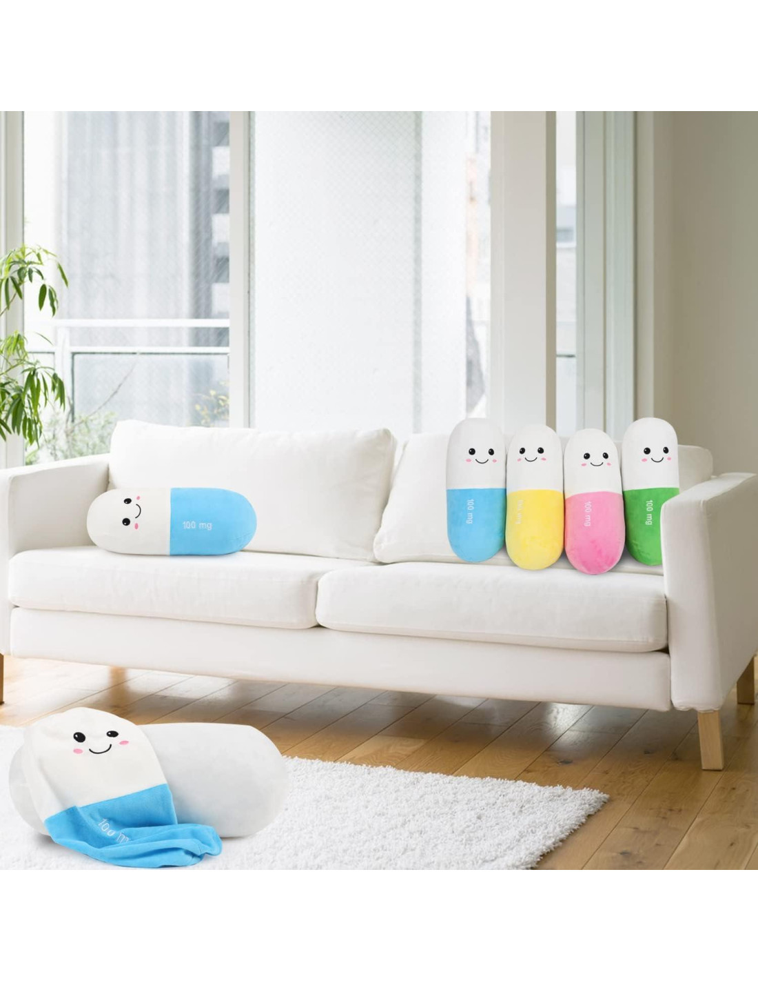 - Único y Llamativo - Almohada en forma de píldora con bordado de cara sonriente, ¡Relájate y toma una píldora! 100 mg de pura calma, esta almohada cervical seguramente traerá una sonrisa de satisfacción a tu rostro. Detalles y colores brillantes y vívidos, perfecto acento de conversación para la cama, silla o sofá, decoración lumbar acogedora para un escritorio de oficina, cojín para aula de estudiantes, o un intercambio de regalos navideños.