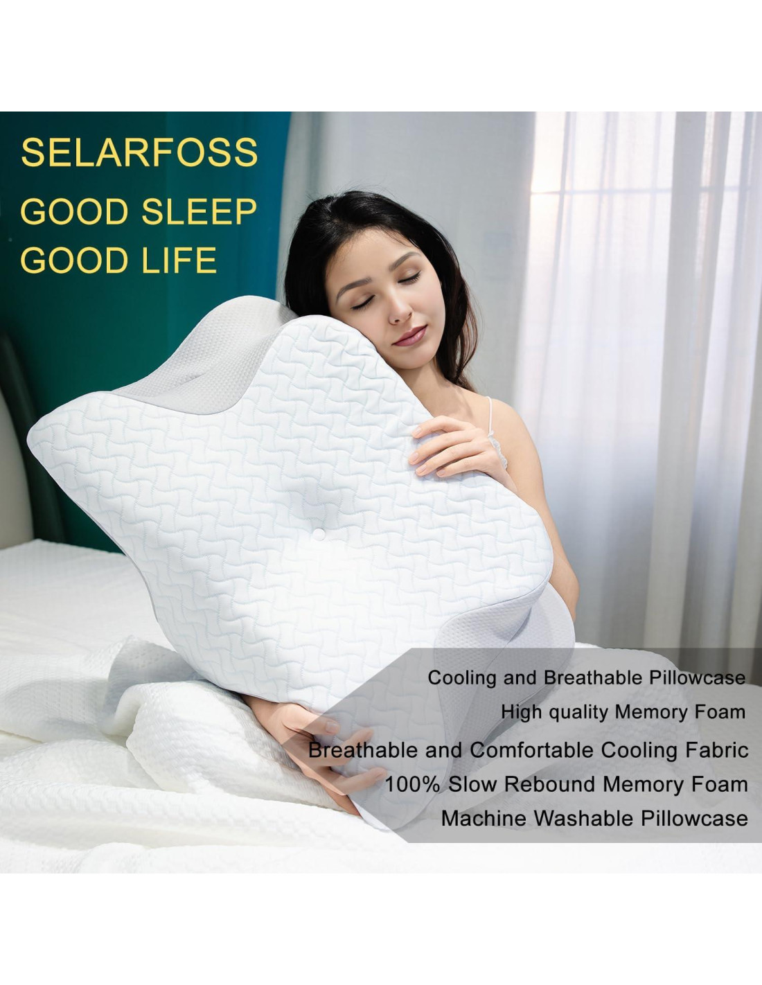 - Es almohadas de espuma viscoelástica - La almohada cervical SELARFOSS está hecha de espuma viscoelástica de alta densidad de rebote lento, suave y cómoda, la almohada de contorno no se aplana ni pierde su forma, la almohada es lo suficientemente fuerte y mantiene la suavidad que debe tener