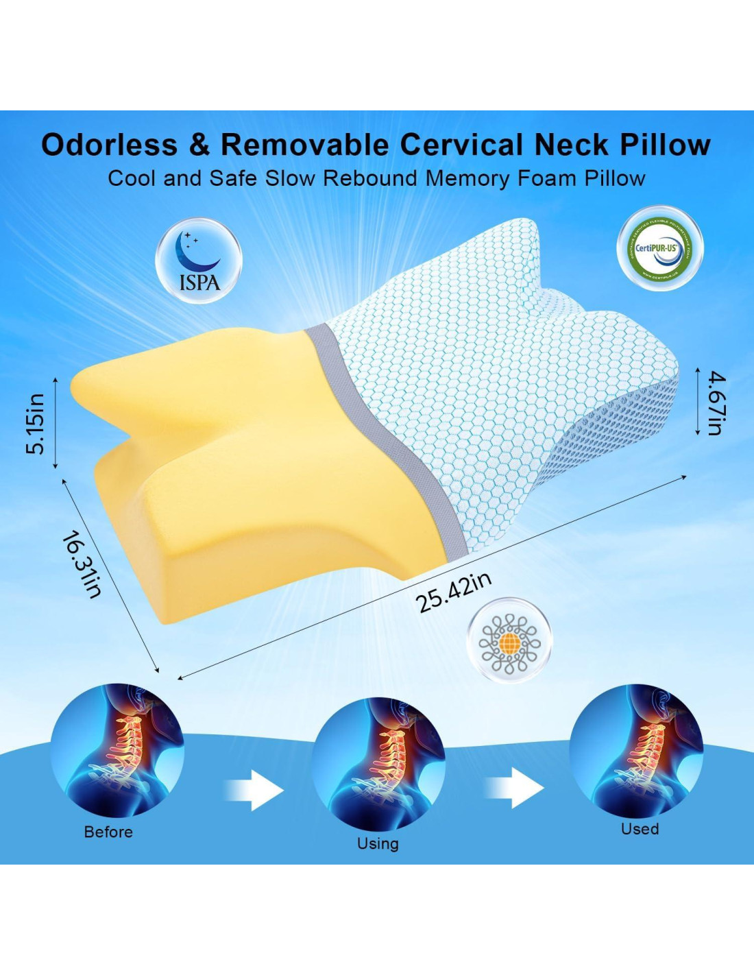 - ALINEACIÓN ESPINAL REVOLUCIONARIA Hemos pasado muchos años calificando un cojín de espuma, que no solo le proporcionará una gran noche de sueño, sino que también ayudará a alinear su cuerpo al usarlo cada noche, nuestro cojín cervical está contorneado y curvado, lo que lo hace cómodo alrededor de sus hombros, es un cojín ergonómico y está diseñado para ayudar a proporcionar soporte adicional a su cuello, aliviando la presión de su columna, promoviendo una columna saludable al ayudar con la alineación adecuada