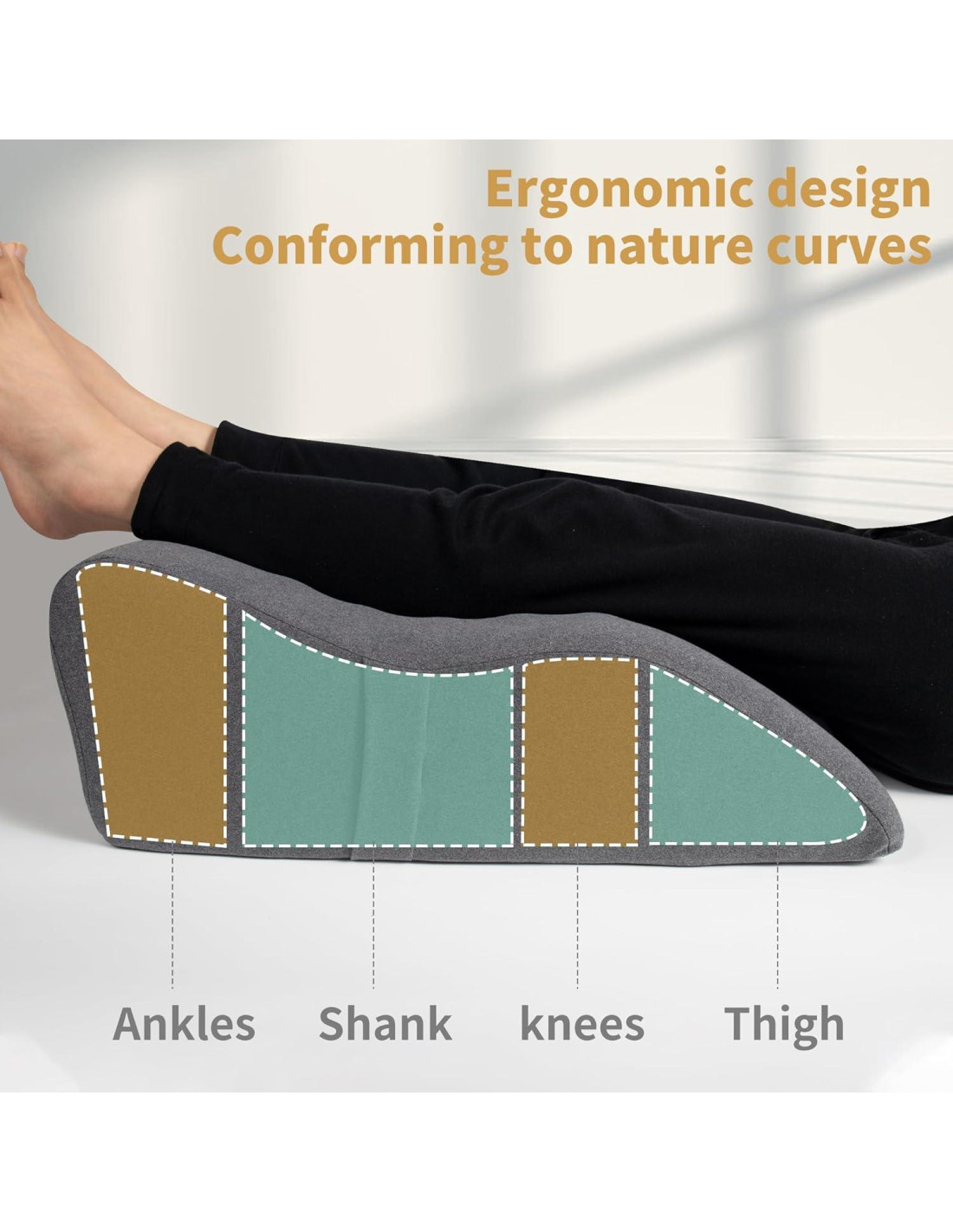 - Diseño Ergonómico: Nuestra almohada en cuña para las piernas presenta una forma ergonómica que se adapta a las curvas naturales del cuerpo para proporcionar una cómoda elevación de las piernas, soporte post-cirugía, reducción de varices y mejora de la circulación con su diseño ergonómico.