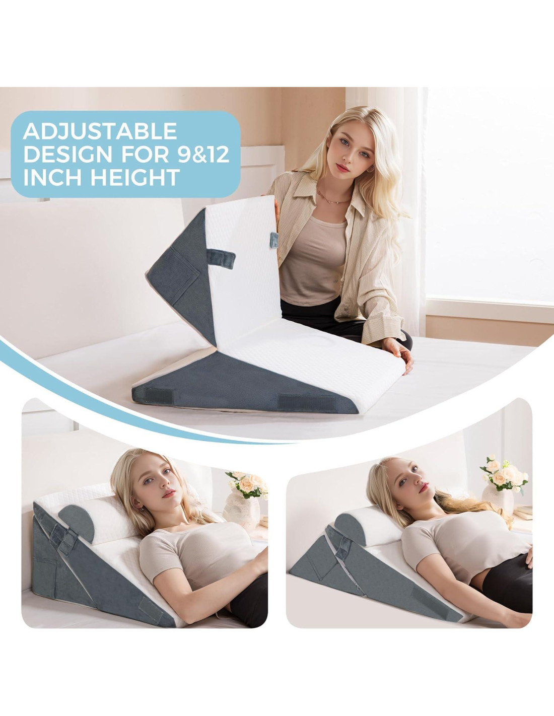 - Fácil de Cuidar: El juego de almohadas cuña cuenta con una funda desmontable y lavable a máquina hecha de tela de aire transpirable para un mantenimiento sin esfuerzo y frescura duradera. Diseñada cuidadosamente con bolsillos laterales para almacenar elementos esenciales como tu teléfono o control remoto, y un asa portátil para un fácil transporte, su diseño plegable también asegura un almacenamiento y viaje convenientes.