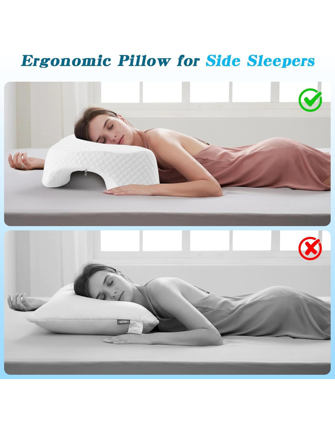 - Diseño Innovador de Múltiples Agujeros: ¡Duerme a Tu Manera! Nuestra estructura única de múltiples agujeros te permite ajustar la posición de tu brazo sin esfuerzo, adaptándose a varios estilos de sueño. Ya sea que prefieras acurrucarte o estirarte, esta almohada para durmientes de lado se adapta a tus necesidades, asegurando la máxima comodidad en cualquier posición.
