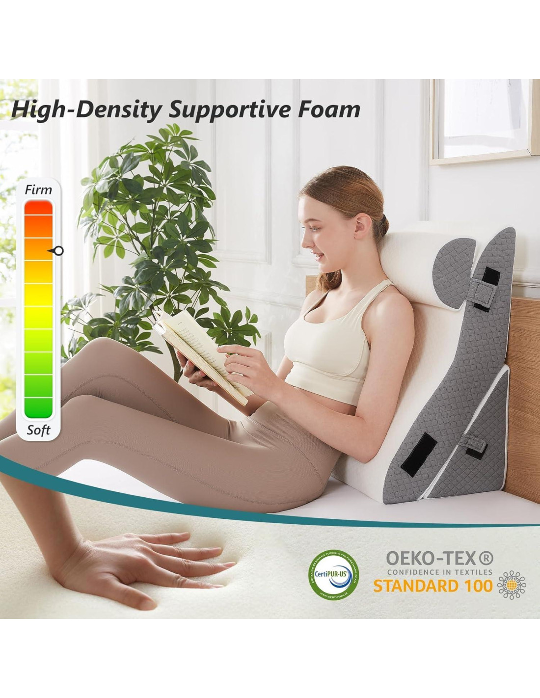 - Espuma de alta densidad 35D, suave y de soporte: Este juego de almohadas en cuña de 42 cm de ancho está hecho de espuma viscoelástica de alta densidad, que no es fácil de deformar y tiene una larga vida útil en comparación con el material de espuma tradicional 25D. También es suave y de soporte, las cuñas para dormir para adultos se ajustan perfectamente a la curva del cuerpo y son capaces de dispersarse uniformemente según el peso y la presión del cuerpo, ayudando a reducir la presión y aliviar la fatiga en todas las áreas.