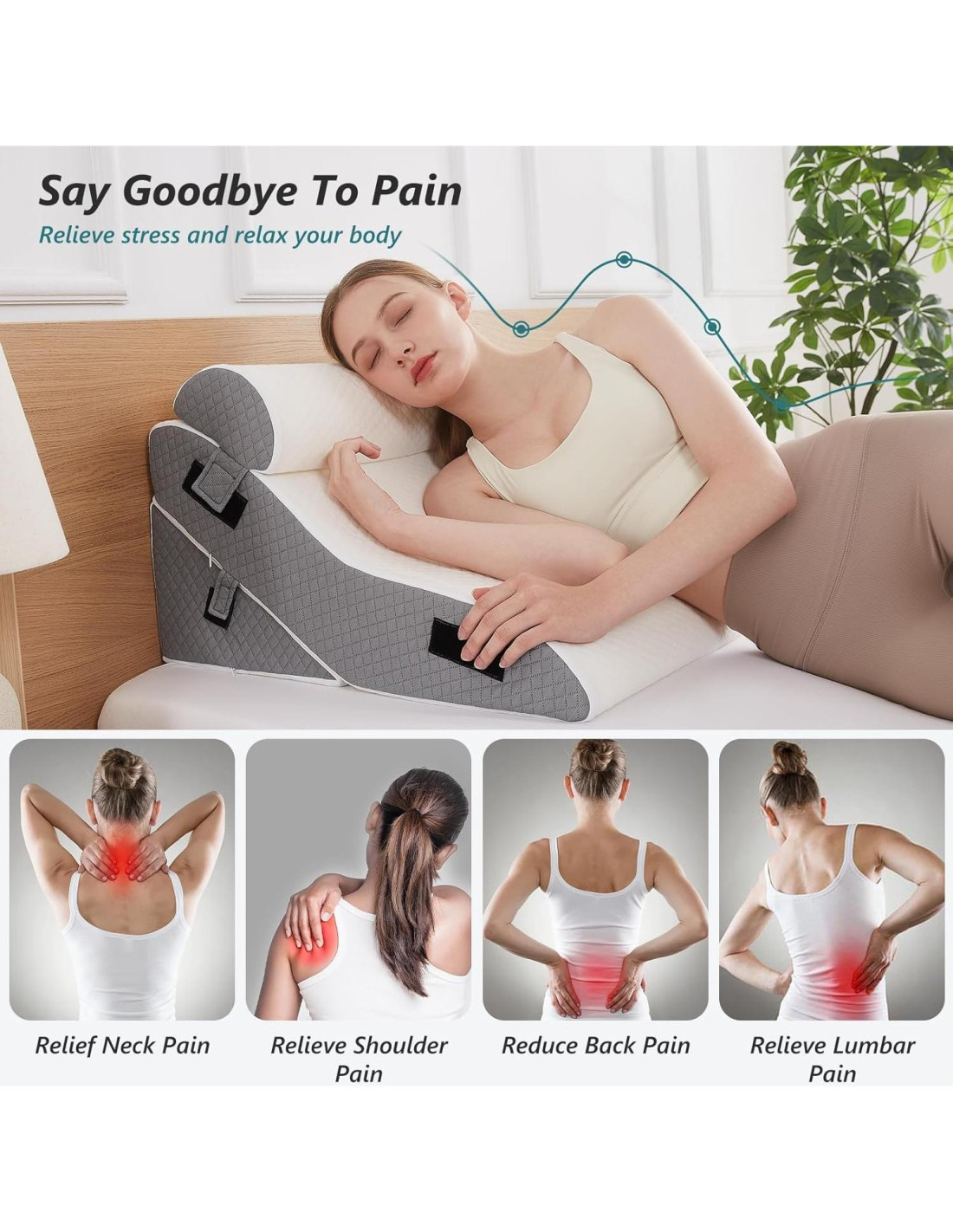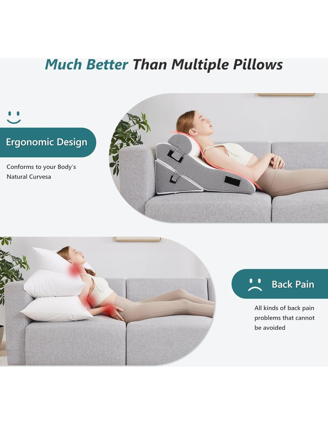 - Almohada de soporte multidireccional para alivio del dolor: Longering diseñó este juego de almohadas en cuña de 3PCS para aliviar la incomodidad y es la ayuda perfecta para la recuperación postquirúrgica. Esta almohada en cuña se puede usar en múltiples áreas de la cabeza, cuello, espalda o piernas para proporcionar un soporte firme y comodidad como posicionador corporal. Nuestro juego de almohadas en cuña alivia el dolor de hombros y cuello, el dolor de piernas y espalda, promueve la respiración y reduce los ronquidos y la acidez.