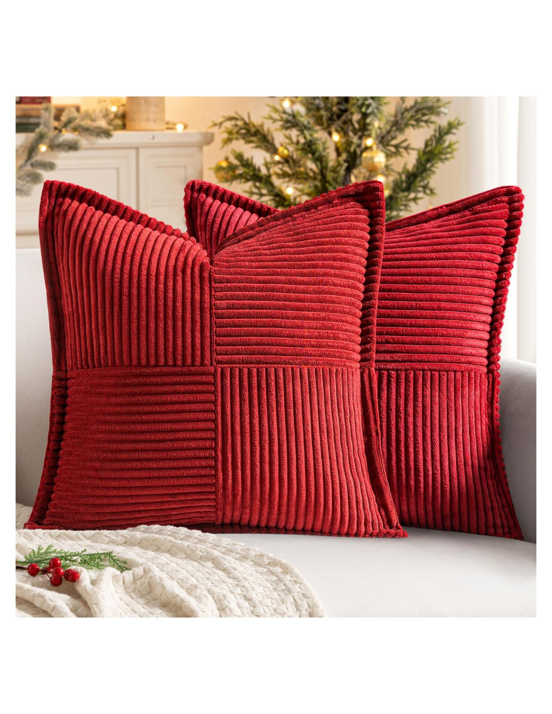 - [Diseño Único] Las rayas de corduroy están unidas en diferentes direcciones en un diseño único. La disposición artística crea un efecto visual llamativo, haciéndolas un acento decorativo perfecto para tu sofá o cama.