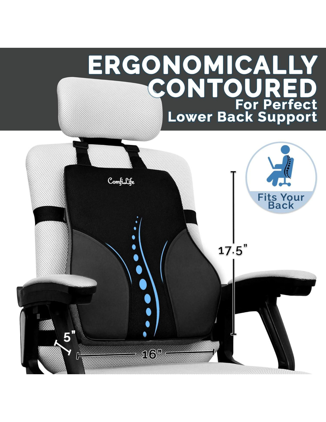 - Soporte Lumbar Ergonómico para Silla de Oficina y Soporte para Espalda en Coche: La Almohada de Soporte Lumbar ComfiLife está diseñada expertamente para proporcionar un soporte lumbar inigualable para sillas de oficina, asientos de coche, sillones reclinables, sillas de juego, con una forma ergonómica que se ajusta perfectamente al contorno de tu espalda para máxima comodidad y alivio del dolor lumbar.