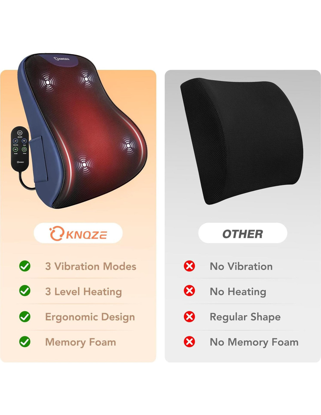 - Masaje por Vibración: Nuestra almohada de soporte para la espalda está diseñada con 4 potentes motores de vibración, proporcionando alivio del dolor dirigido a la parte baja y alta de la espalda. 3 modos y 3 niveles de intensidad para personalizar su uso. Nota: No tiene masaje rotativo o de rodillo.