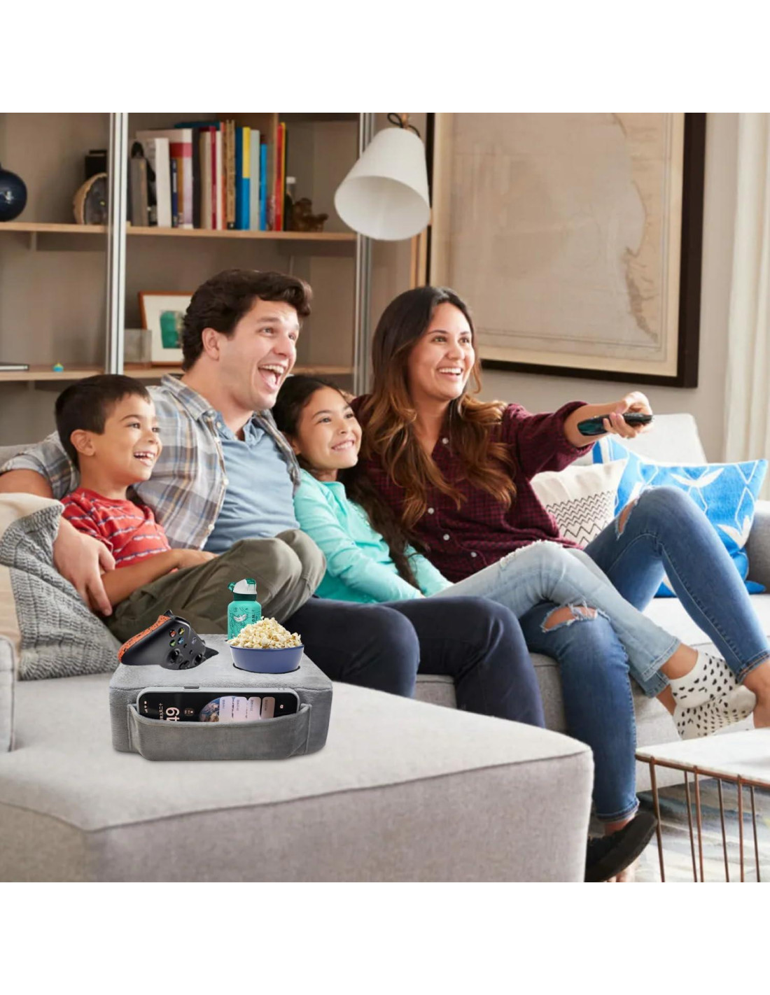 La bandeja para bebidas del sofá realmente se adapta a ti. Tiene múltiples compartimentos: Uno de los agujeros grandes se extiende para adaptarse a tazas, botellas, vasos y otros recipientes de bebida más grandes. El diseño mejorado lateral añade un bolsillo lateral que puede sostener un teléfono móvil.