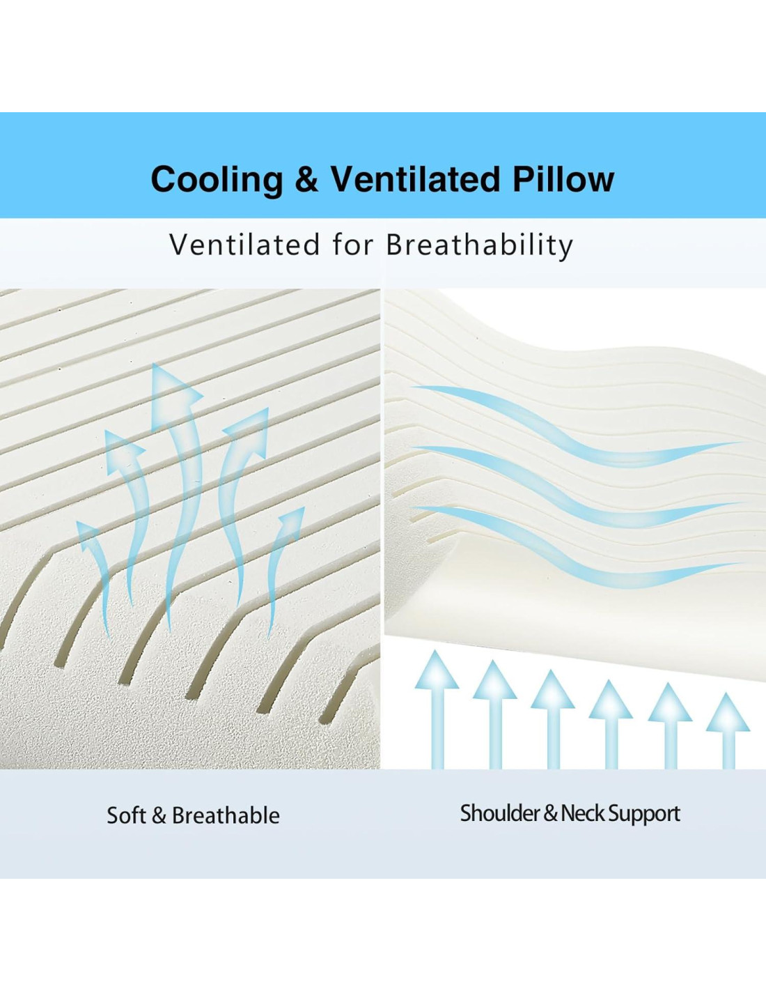 - Diseño de Ventilación Innovador: ¡Di adiós a las noches calurosas y sofocantes! La superficie ranurada y la espuma altamente transpirable con una tasa de celdas abiertas del 95% mantienen el aire fluyendo libremente, disipando el calor y la humedad. Disfruta de un sueño fresco y sin sudor toda la noche, sin importar la temporada.