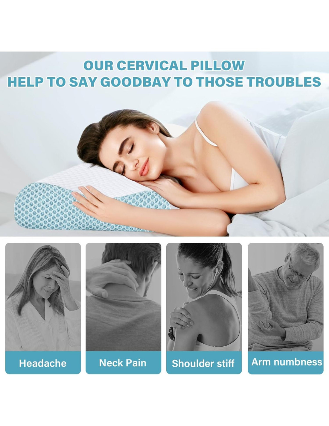 - Usos específicos del producto: Durmiente de Lado, Espalda, Estómago, Dolor de Cuello y Hombros, Dolor de Cuello