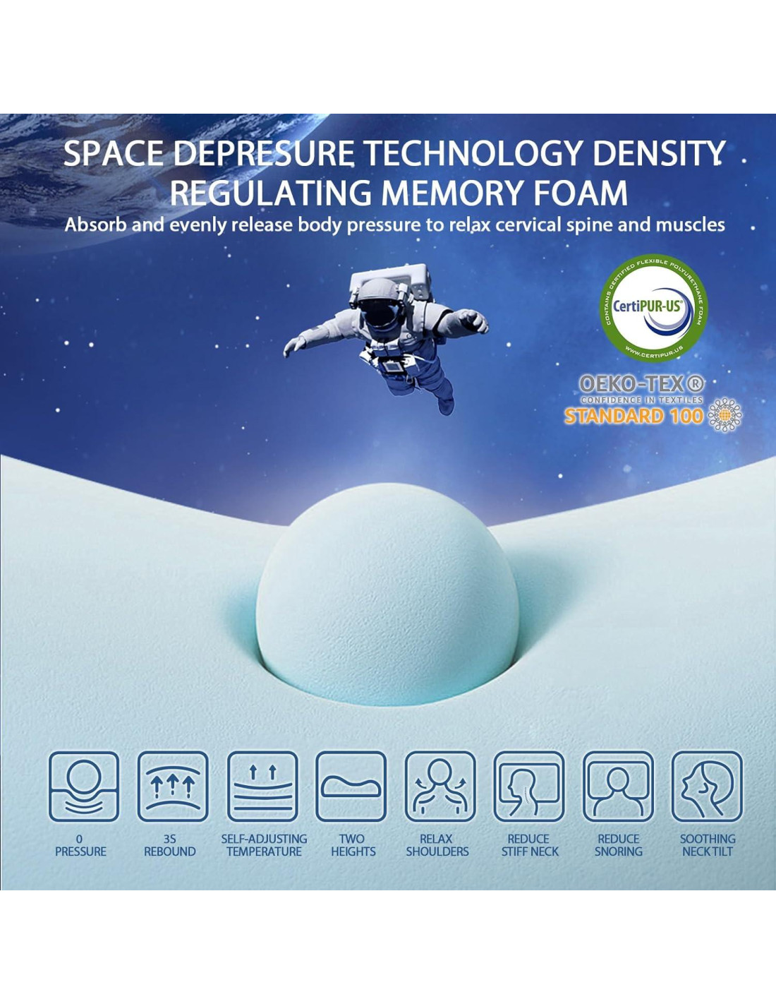 - [TECNOLOGÍA ESPECIAL DE ESPUMA DE MEMORIA] La almohada ergonómica BSAFP es una mezcla perfecta de espuma de memoria de 0 presión y tecnología de regulación de densidad. La espuma de memoria de 0 presión de rebote lento absorbe y libera la presión del cuerpo de manera uniforme, relajando la columna cervical y los músculos sin importar la posición para dormir. La densidad del área para dormir de lado se ha reducido en un 15% para minimizar la tensión en la piel y las orejas. Además, esta almohada contorneada no se aplana ni pierde firmeza después de un uso prolongado.