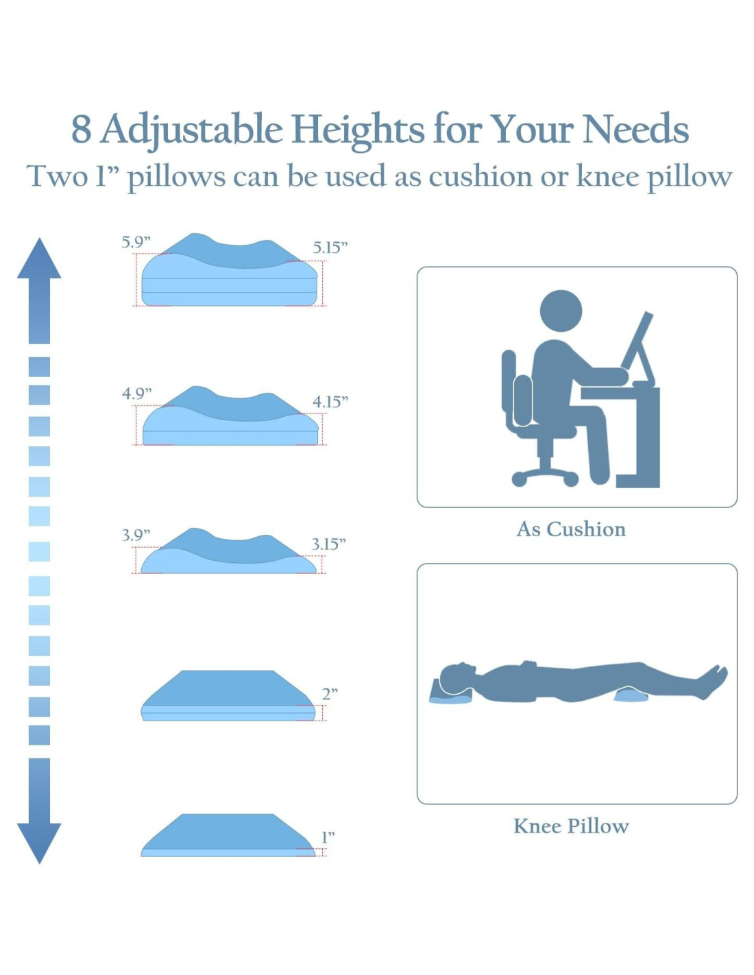 - [Ajustable 3 Capas - Para 8 Alturas] La almohada de espuma viscoelástica refrigerante viene en un tamaño de 35.56 cm x 35.56 cm x (13.0 cm~14.9 cm). Al combinar 3 capas, puedes personalizar la almohada a 8 alturas diferentes, como 2.54 cm, 5.08 cm, 7.62 cm, 8.1 cm, 10.5 cm, 10.7 cm, 12.7 cm, 13.0 cm. Proporcionando soporte personalizado para tu cuello y columna.